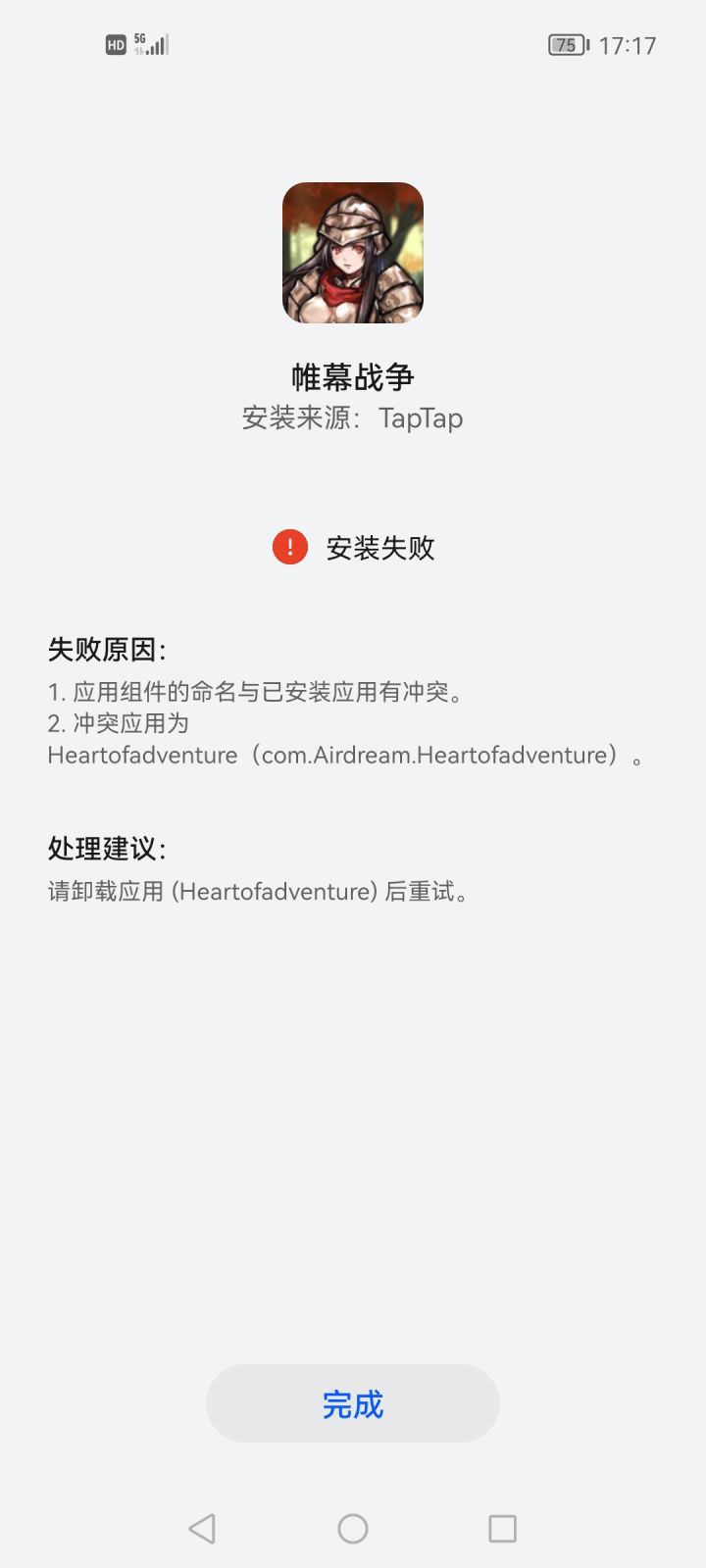 如图,提示有冲突,但我手机中压根搜索不到这个Heartofadventure