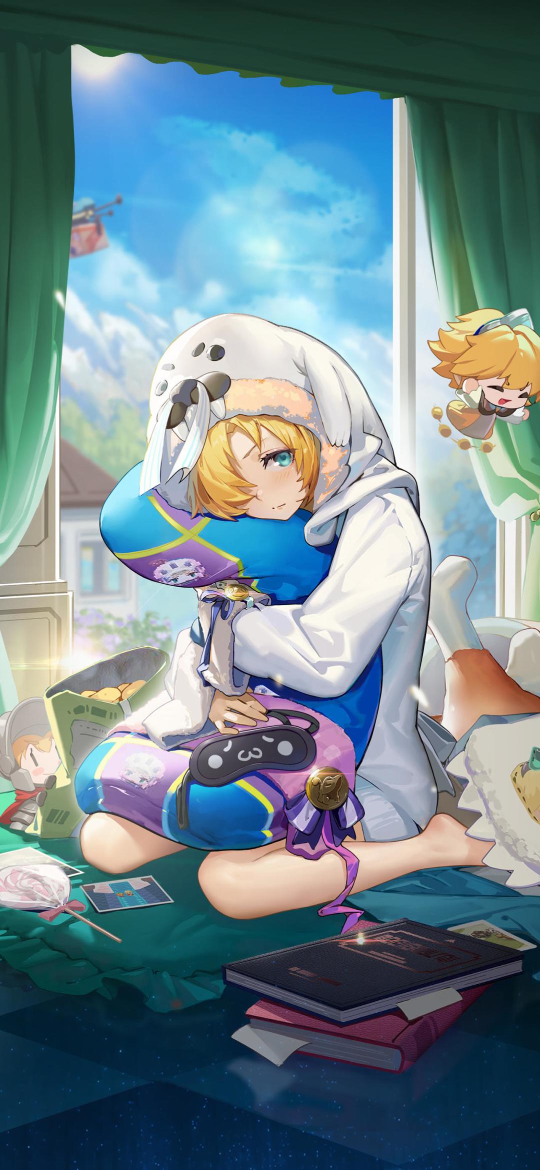 “哈~~”一声慵懒的哈欠声从浮游城中央的一座小房子中传出,二楼一间房间内,一个穿着蓝白色海豹睡衣,怀里抱着个大抱枕的少女伸了个懒腰,呆呆的坐在床上,整个人迷迷糊糊的,蔚蓝色的大眼睛里有着丝丝困意。