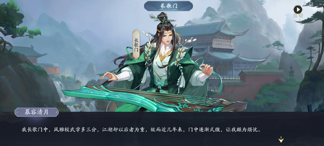首先来到长歌门与门主慕容清月交谈,得知其烦恼在于门派式微,武学丢失,后面又与慕容兄的谈话间知晓李太白曾将剑法藏于门派之内,于是拜托我们帮忙寻找。