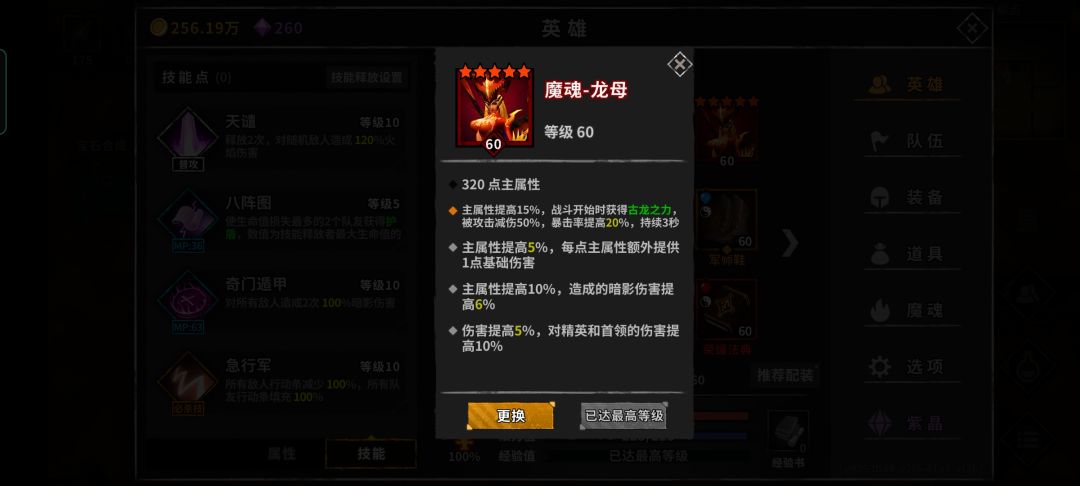龙母为诸葛亮魔魂,骷髅角斗士为刘备魔魂,其他的随意,谁上阵给谁。没有龙母之前,诸葛亮可以用梦境吞噬者,或者墓穴蜘蛛都可以,刷到龙母了,直买下不要犹豫,恶魔之王也是,水晶不够就肝一会,40层之前一定要搞到龙母升到一星杂进去一个恶魔之王(提升巨大)!