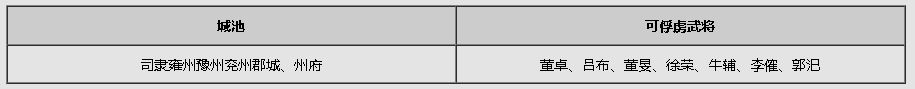 太师各部占据着中原地区的各大重要郡城,以城池为据点虎踞龙盘。然各部将领亦非死忠于董,若击败其军队,攻占城池时俘虏太师势力的敌将,可进行招降,转为己用。