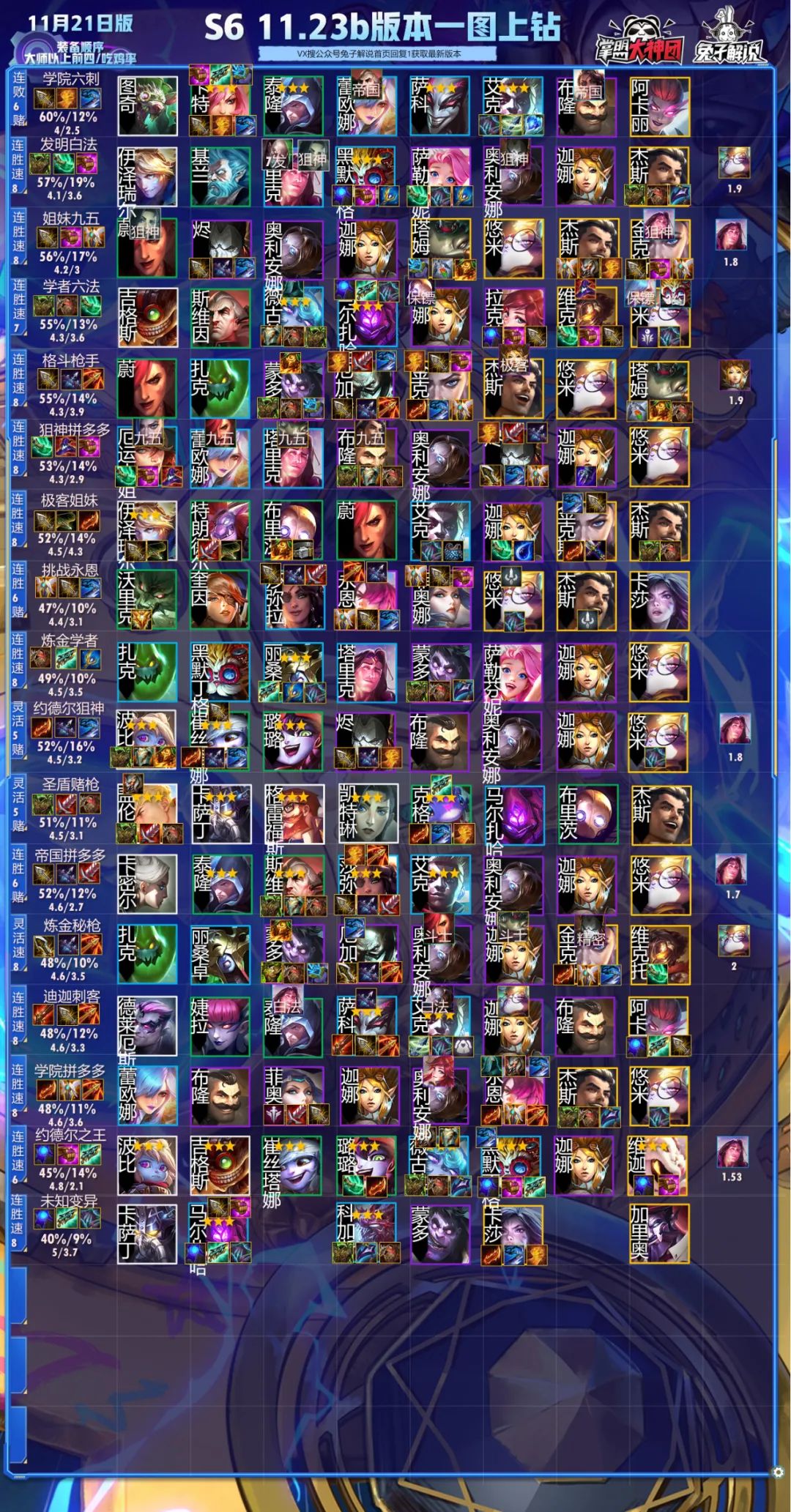 11.23b的榜单兔子已经做了,很显然帝国塞恩砍废了,但是刺客仍在,破蛹之变也砍的很厉害,直接跌落B级,不过运营阵容显然释放出了一些空间。