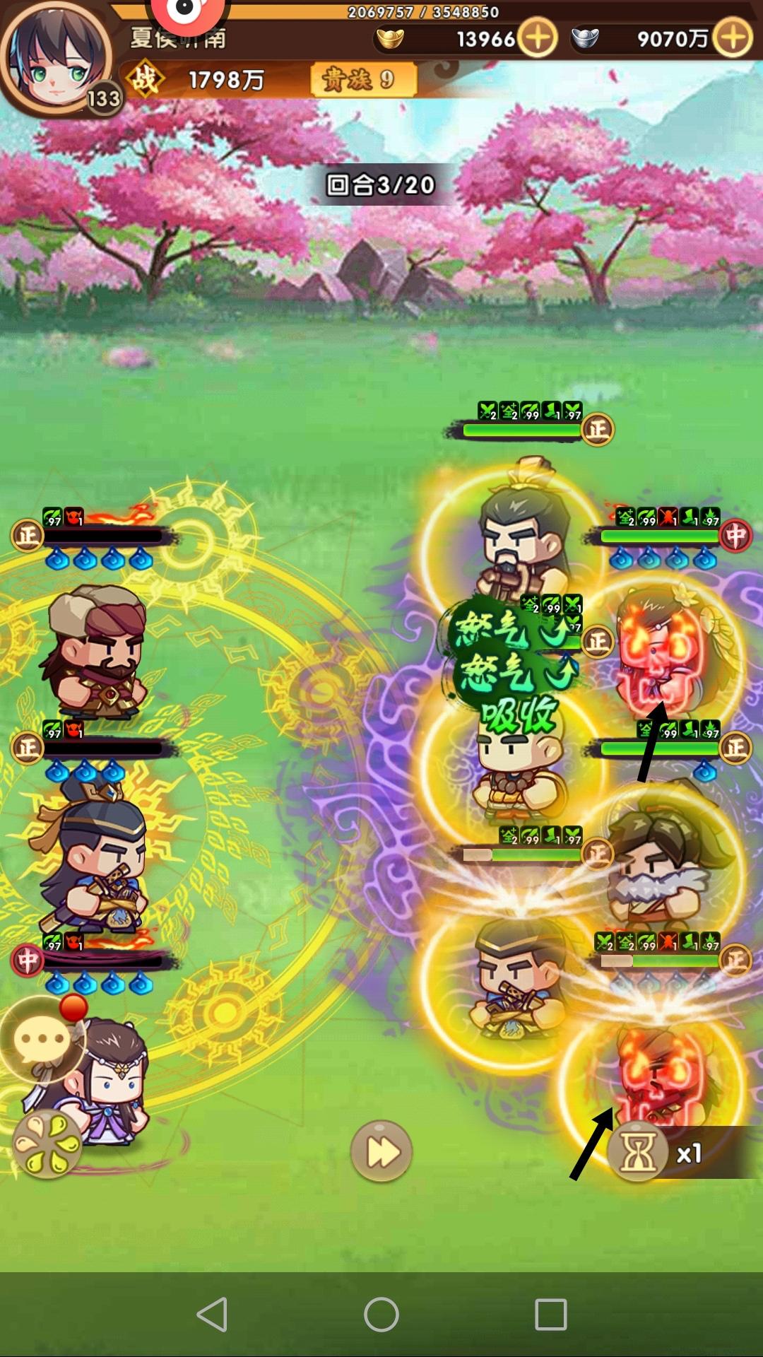 如图所示对手两个角色被封印怒气技能,不能放怒气技能。