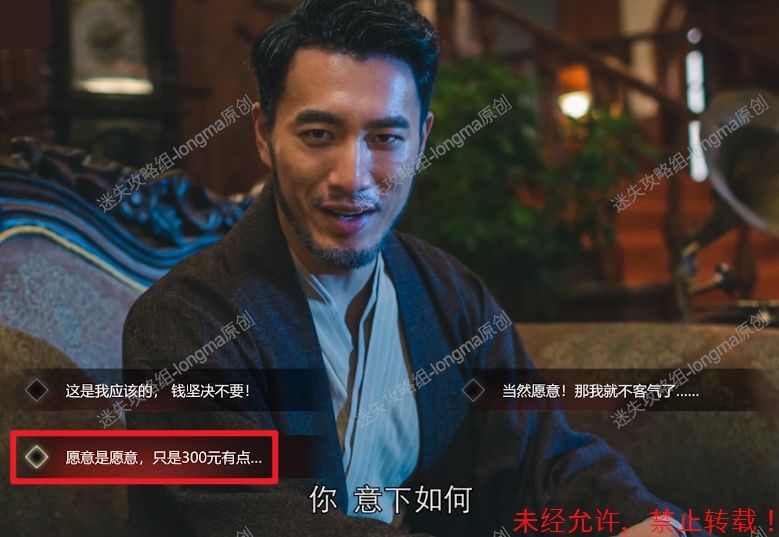 14.面对日本领事的邀请,选择【愿意是愿意,只是300元有点...】,获得两点好感度。14