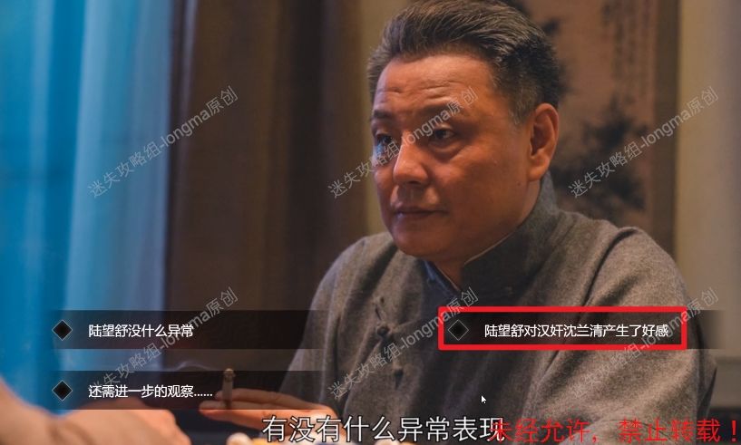 120.面对高源的询问,选择【陆望舒对汉奸沈兰清产生了好感】。120