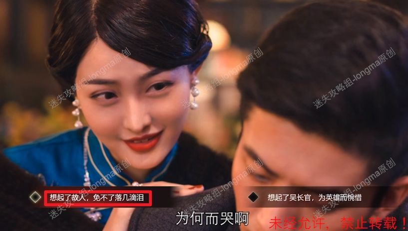 43.在询问下选择【想起了故人,免不了落几滴泪】,获得庄晓曼1点好感度。43