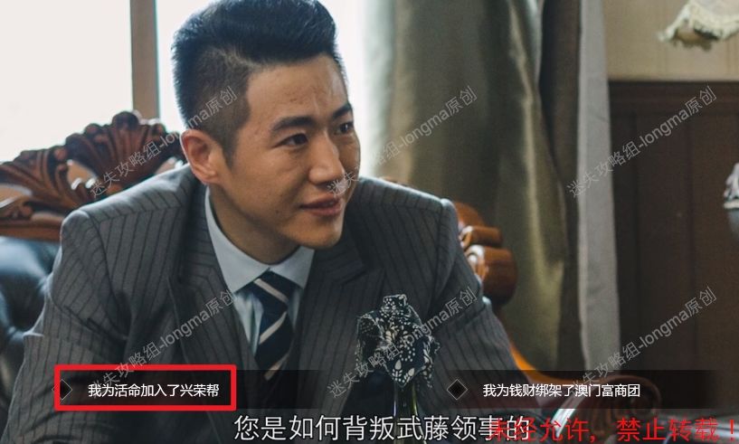 127.第四个问题,选择【我为了活命加入了兴荣帮】。127