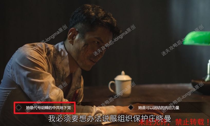 110.为了保护庄晓曼,选择【她是代号胡蜂的中共地下党】。110