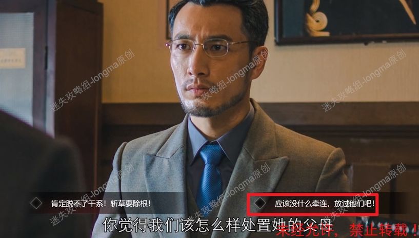 34.在武藤的询问下选择【应该没什么牵连,放过他们吧!】。34