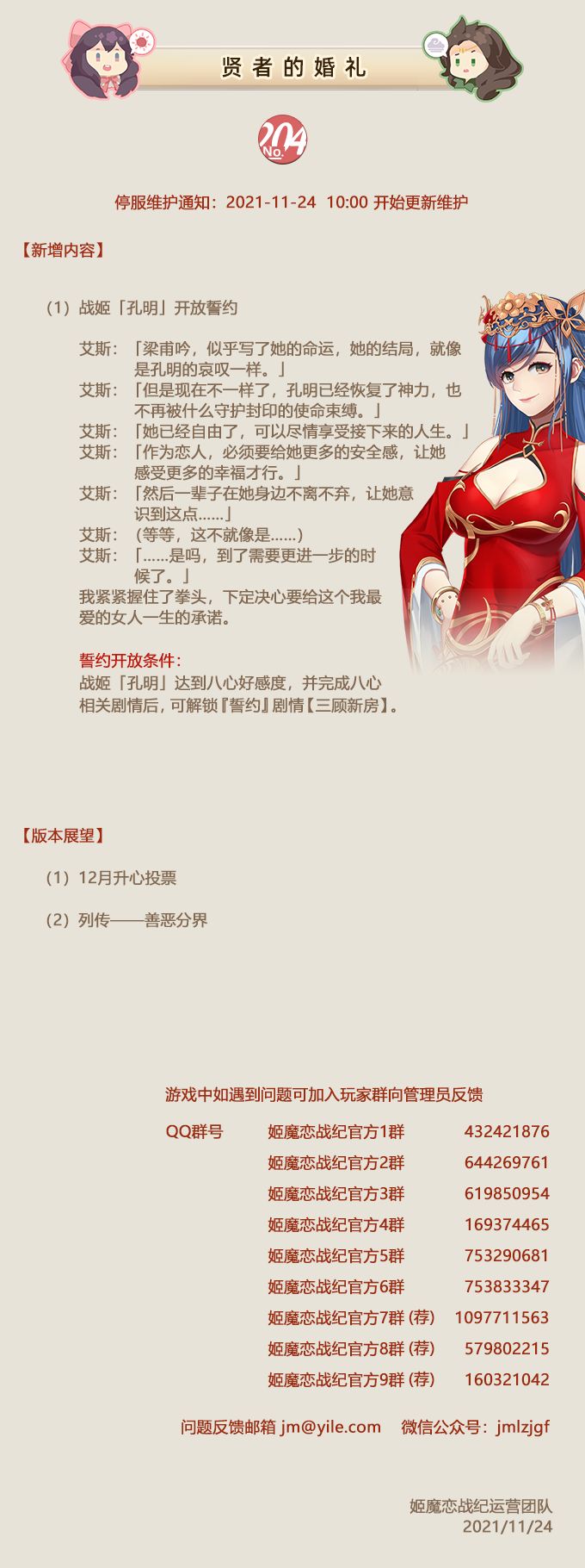No.204 贤者的婚礼《姬魔恋战纪》11月24日更新公告