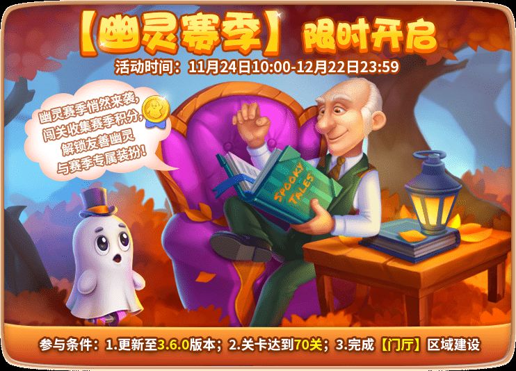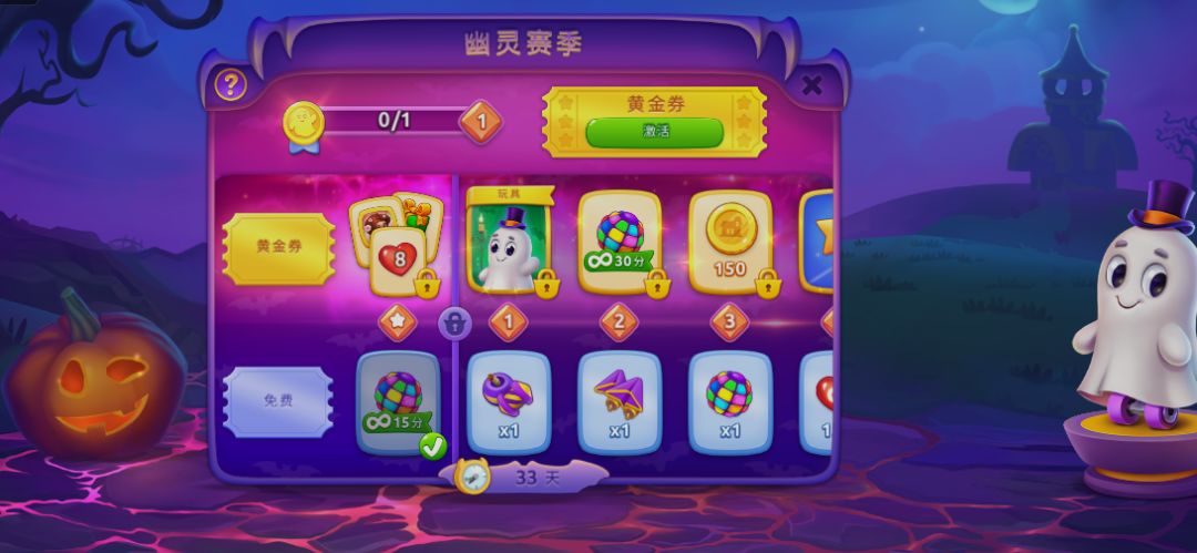 幽灵来袭,点亮奇怪的南瓜灯,开启新的赛季! 一起闯关升级黄金券,捕获呆萌小幽灵叭!