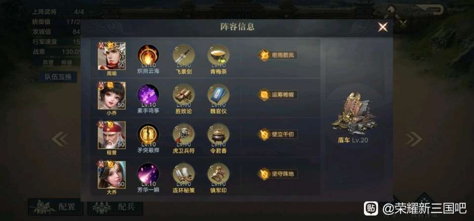 1.大乔小乔程普(最基础的一套获取难度不高,本人就是,之后的放的图也都是这套阵容)