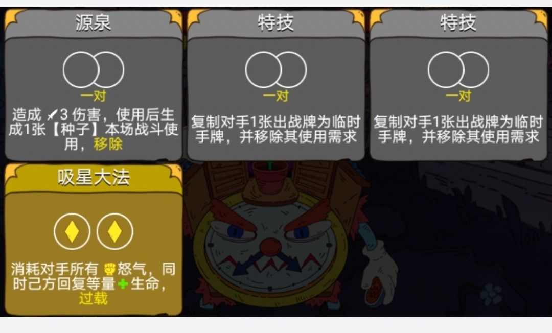 源泉最高伤害是【开花】的50点。这是唯一一个个能吸收角色怒气为己用的。打不死人,但是能恶心你。