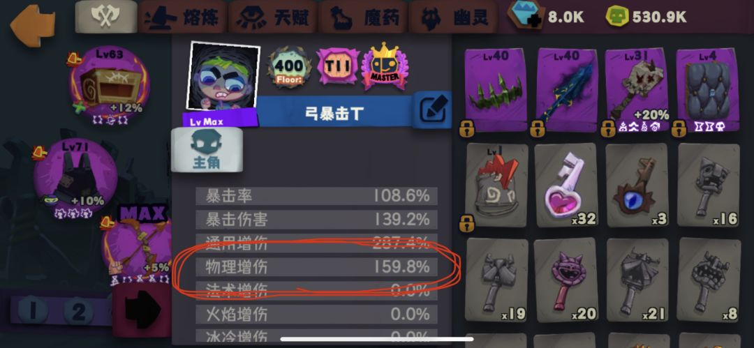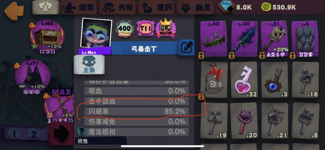 以下全是我静止状态没有buff加成,图1是天赋➕装备的自身物理增伤27%。图2点出“灵活打击”每点闪避加成2%物理增伤。图3是我的闪避率85%。图4是我加完灵活打击后的物理增伤159.8%。我现在的物理增伤不应该是85*2+27=197%吗?现在这个159.8%是怎么计算出来的?