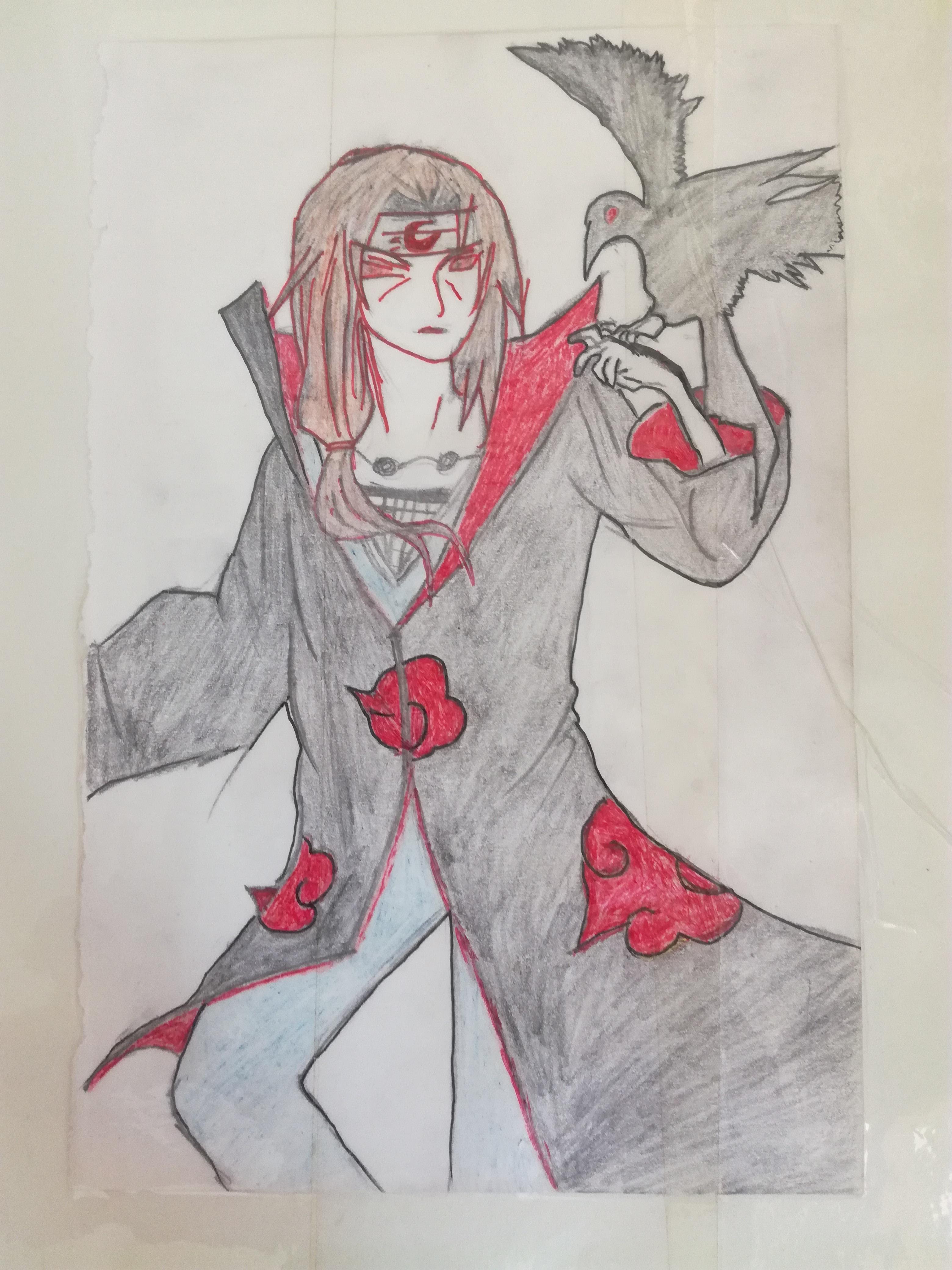 他弟的脖子画错了,不会画侧脸和肌肉,鼬的手画粗了,腿不知道画什么颜色