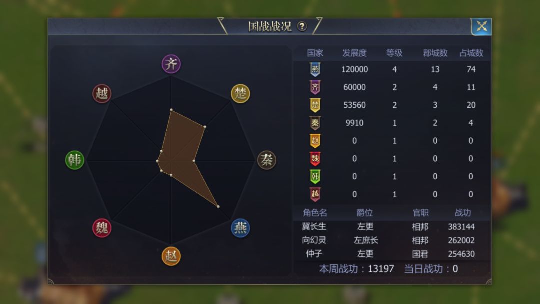 1区 11月23日战报 燕国三路并进,秦国国都陷入危机,楚国东面进攻受阻,齐国欲进南面收复失地