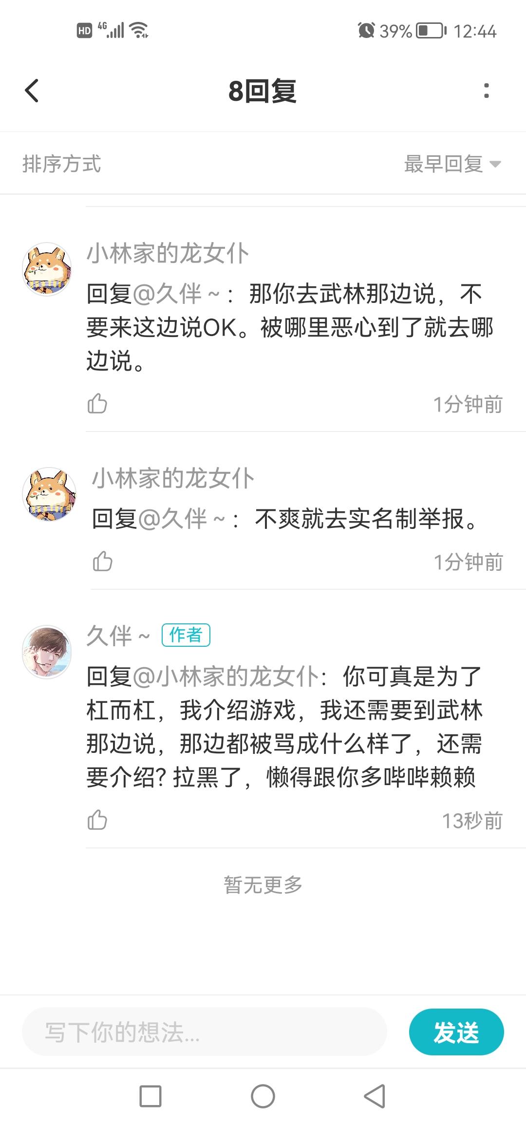 你看不惯武林,你去他们自己的论坛帖子里使劲骂你不要在别的游戏里面四处骂,OK。而且你这一手。骂人拉黑操作玩的溜啊。