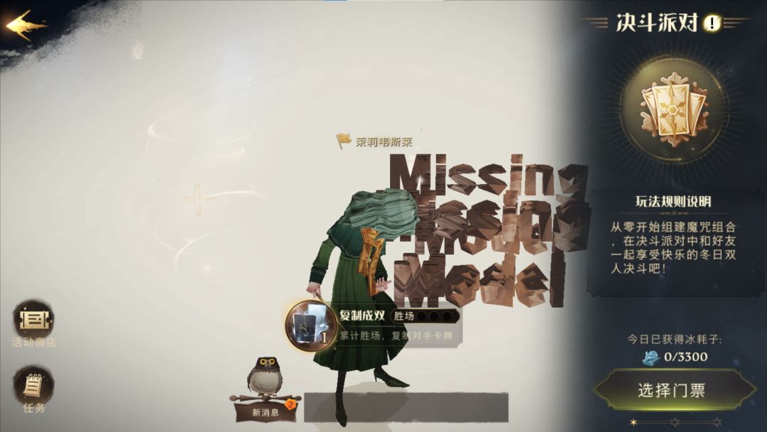 整体玩法与之前万圣节活动相似,通过各种玩法获取活动代币,然后可以在商店内兑换奖励。这次的活动代币名字叫【冰耗子】,是原著里的一种强效薄荷糖,用在这里还挺有趣的。