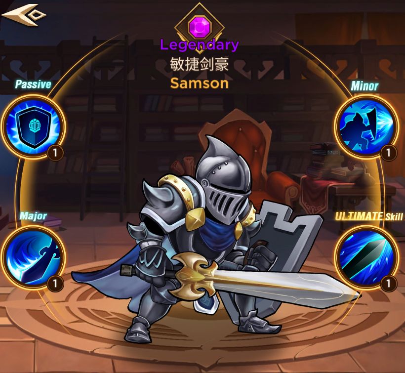 强力护盾(被动):吸收1名随机队友的80%承受伤害。如果甘达尔在同1支队伍中,则参孙将获得+10%的防御力。