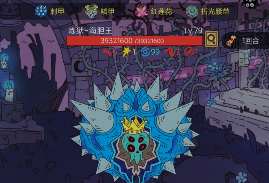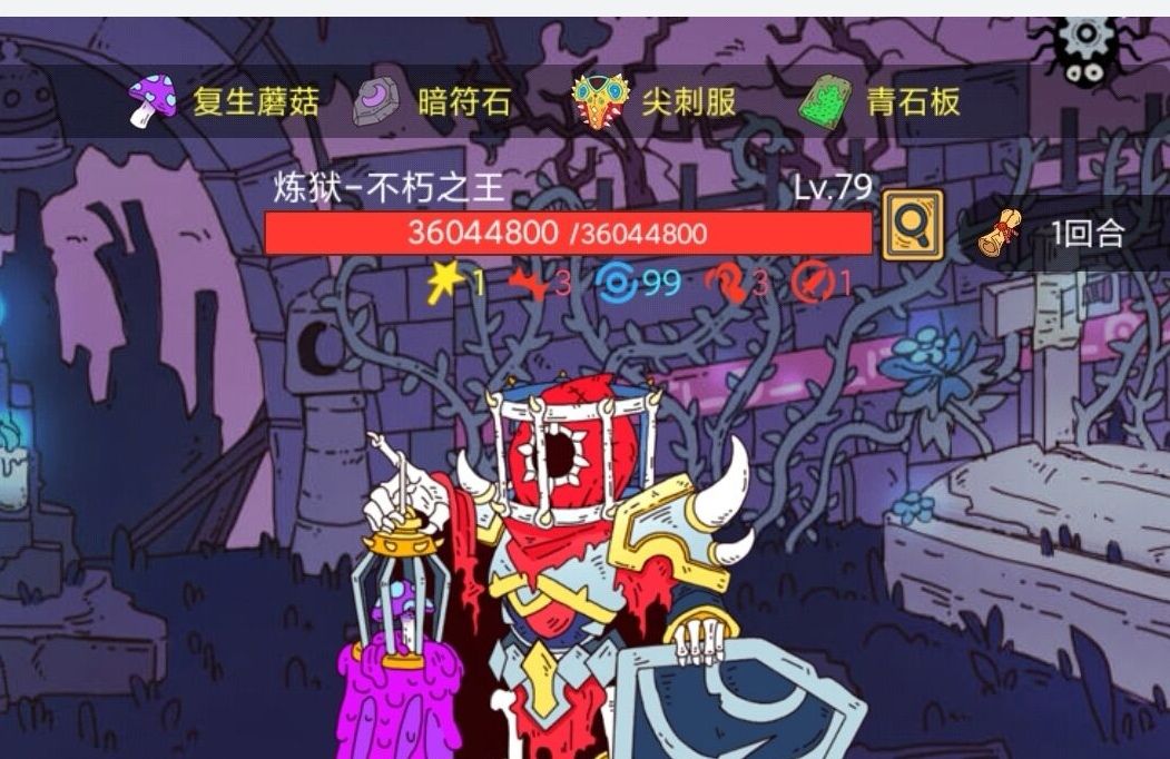打法:还是带回合外有伤害性的装备(尖刺/麟甲➕青冈石)在第二回合吃个不死药(歌颂可以不吃,因为有不死卡),什么都不用做。直接过,然后喜闻乐见的事情发生了,怪出了一张牌,它自杀了还欠了几千万血,你还满血了。