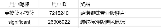 恭喜以下小伙伴获得奖品!更多活动请继续关注最新赛事快讯~