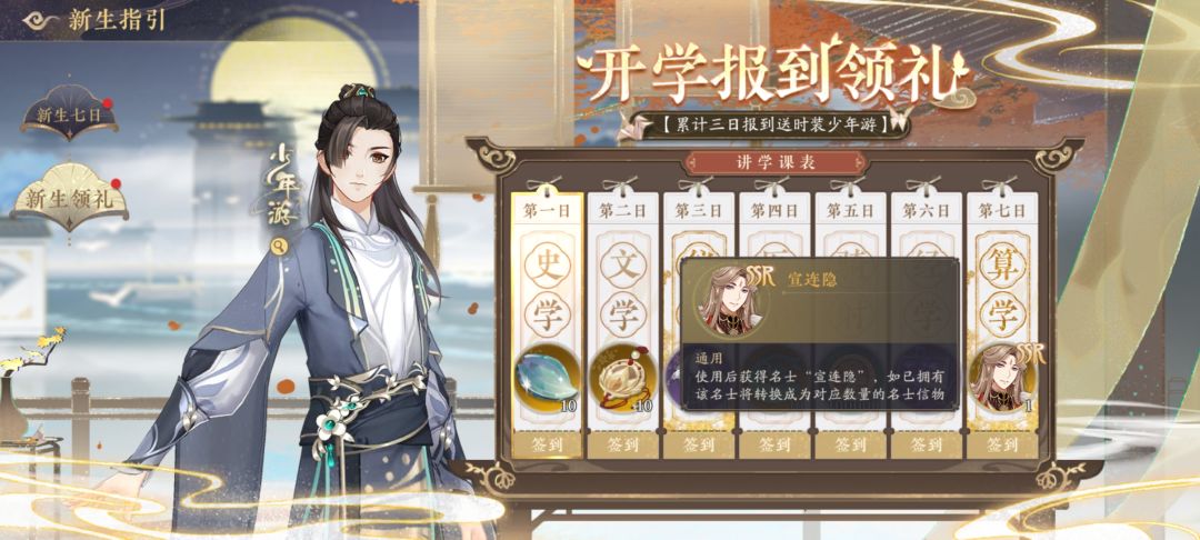 ②开服七日签到第七天同样可以获得宣连隐,重复的名士可转化成碎片,碎片可用来突破。