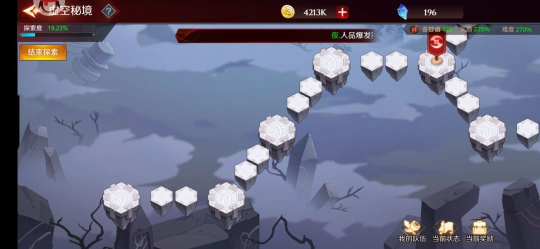 2.探索秘境时会根据玩家对所遭遇事件的选择增加或者减少贪婪值,贪婪值影响敌人强度和掉宝率。