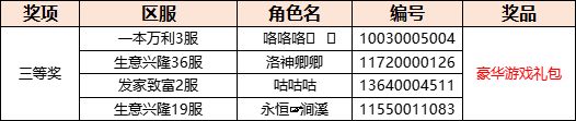二等奖3名:大掌柜精美立牌*1三等奖6名:豪华游戏礼包*1