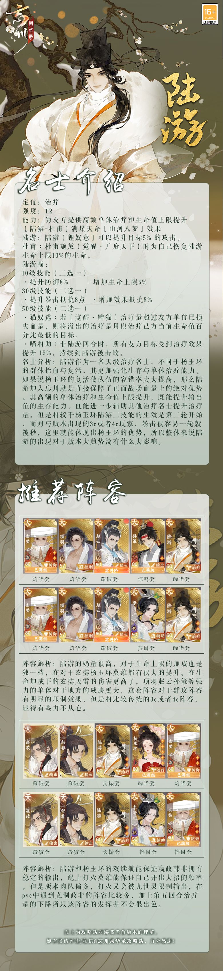 陆游作为忘川中可以增加生命上限的名士,和很多名士拥有不错的配合,快来和站站一起来看一下吧!