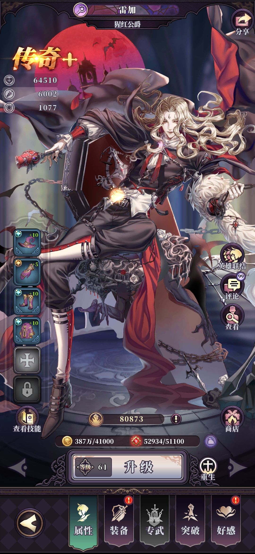 2:吸血鬼(个人叫他鬼伯爵)和上面那个有羁绊,具体大家可以去看,