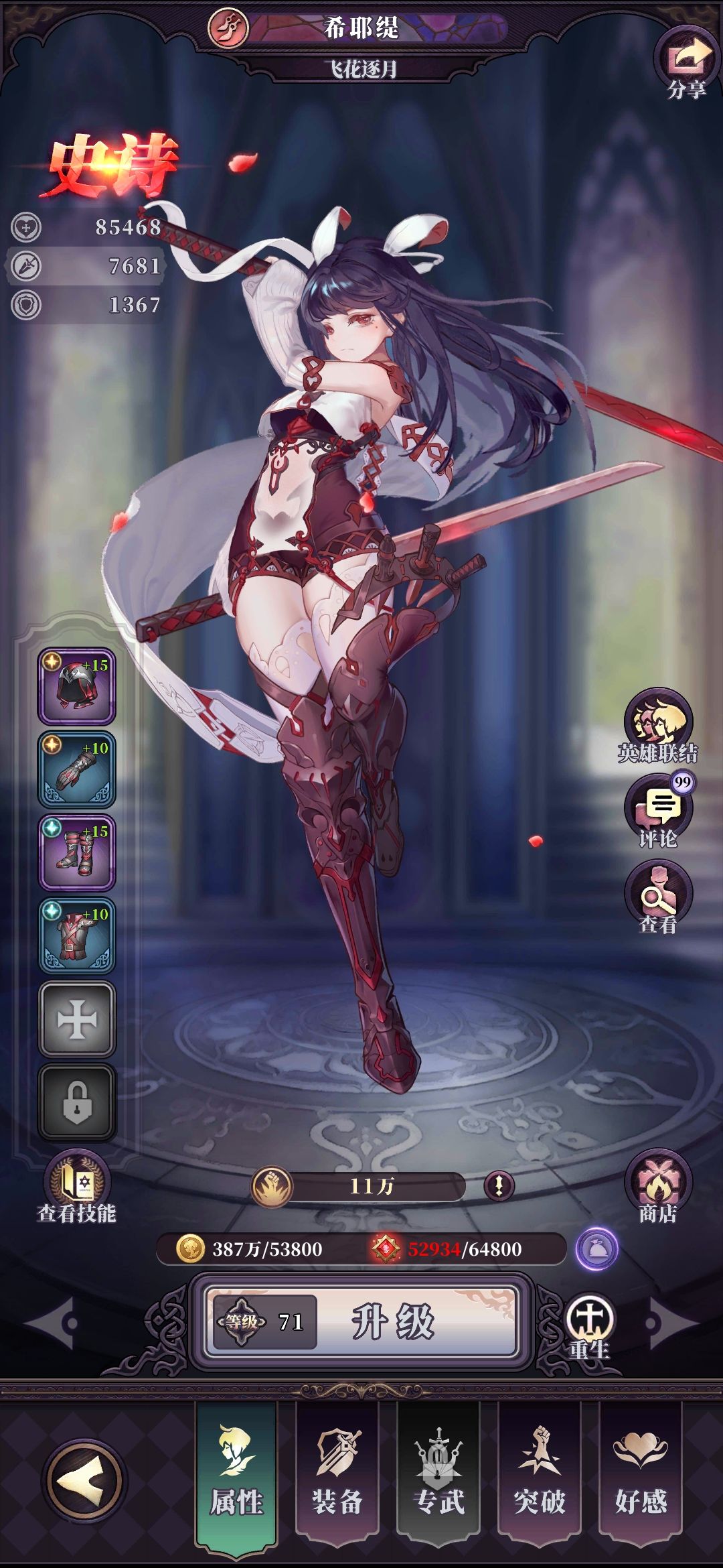 装备加的战力在这个游戏是很高的,特别是四件套的羁绊,我推荐兔子用这套,因为他定位就是输出秒人