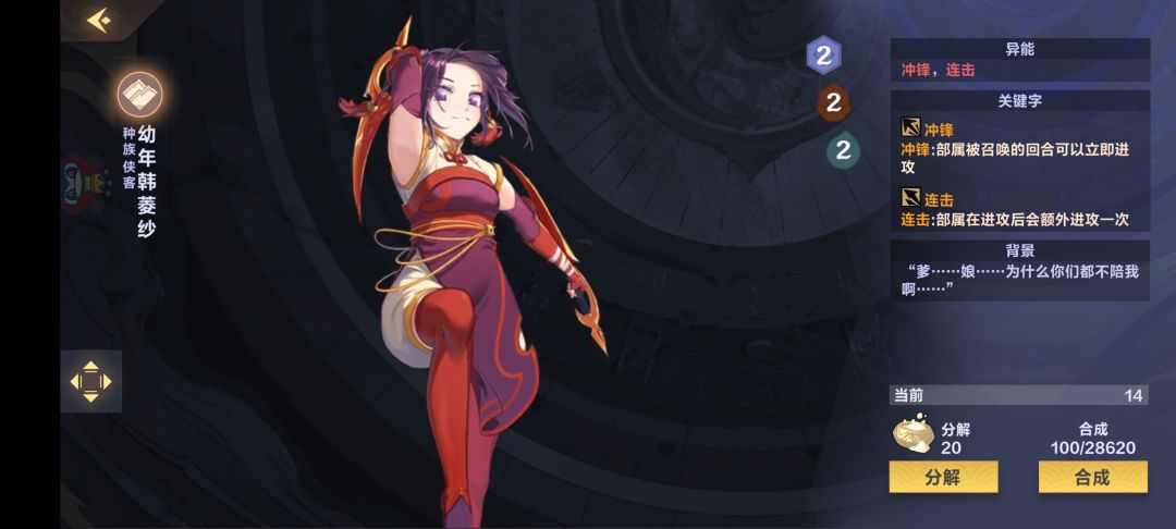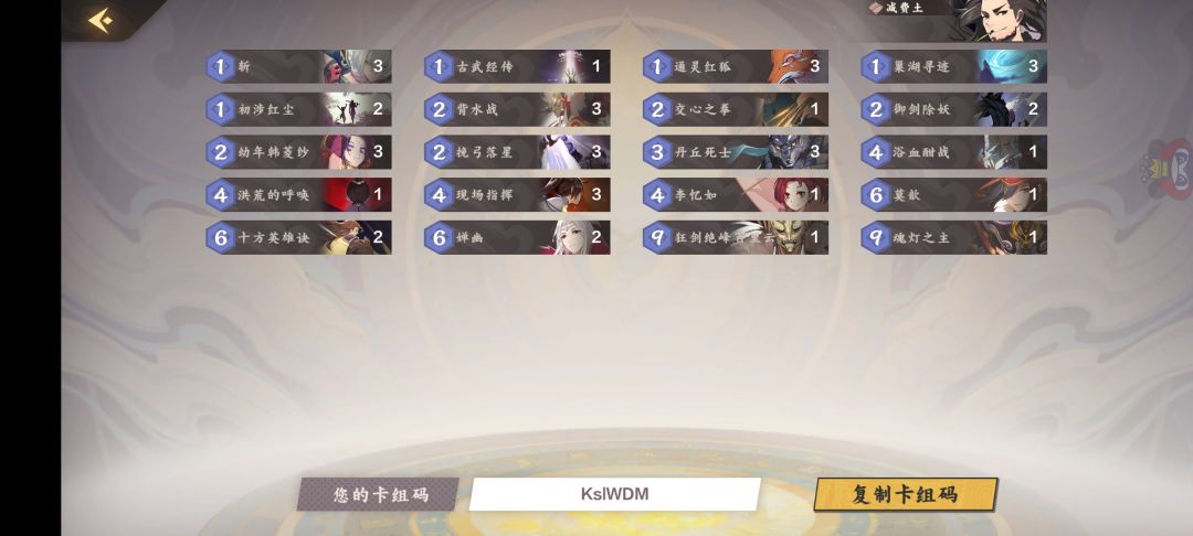 最后是这三张卡,由于我们是杂技卡组,为了成功拖到我们的杂技施展成功,所以我们必须抗住前期应对快攻卡组的冲击,狐狸,小菱纱,配合土系强力的buff,背水战,古武,初涉红尘,还有挽弓,以及大叔的大招都是非常强力的存在,不仅能抗住前期的快攻,甚至有时候不需要我们施展杂技扣费就直接结束战斗了😂