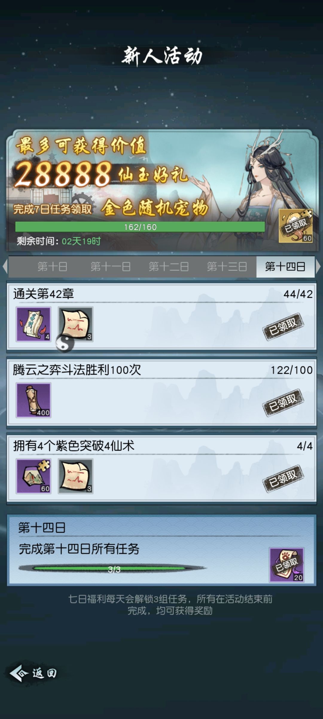 记录一下,零氪好好规划的话,大概率也能拿到十四天奖励了。