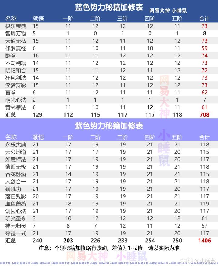 各类秘籍进阶、升级消耗材料表及帮派势力秘籍修为表!