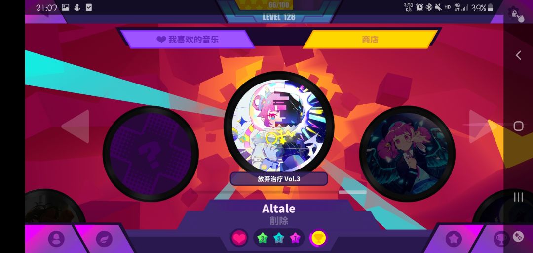 关于和谐有个办法你们可以试试,我当前版本手机里看是1.5.4版本(游戏里面没找到版本多少具体在哪忘了),现在有个办法不用更新一样能玩刚刚试了好几回都可以,先进游戏,进游戏后游戏会自己有个转圈那个界面,光速断网或wifi,等背景加载成轻触屏幕就可以游戏的界面在连接网络,然后进去有个加载动画接着断网,进去显示要网络才可以玩的时候开网络,然后就可以正常选歌曲什么的,玩的时候全程断网,结算界面再开网络啥的同步下就行,大概就是这样反复横跳就能玩到