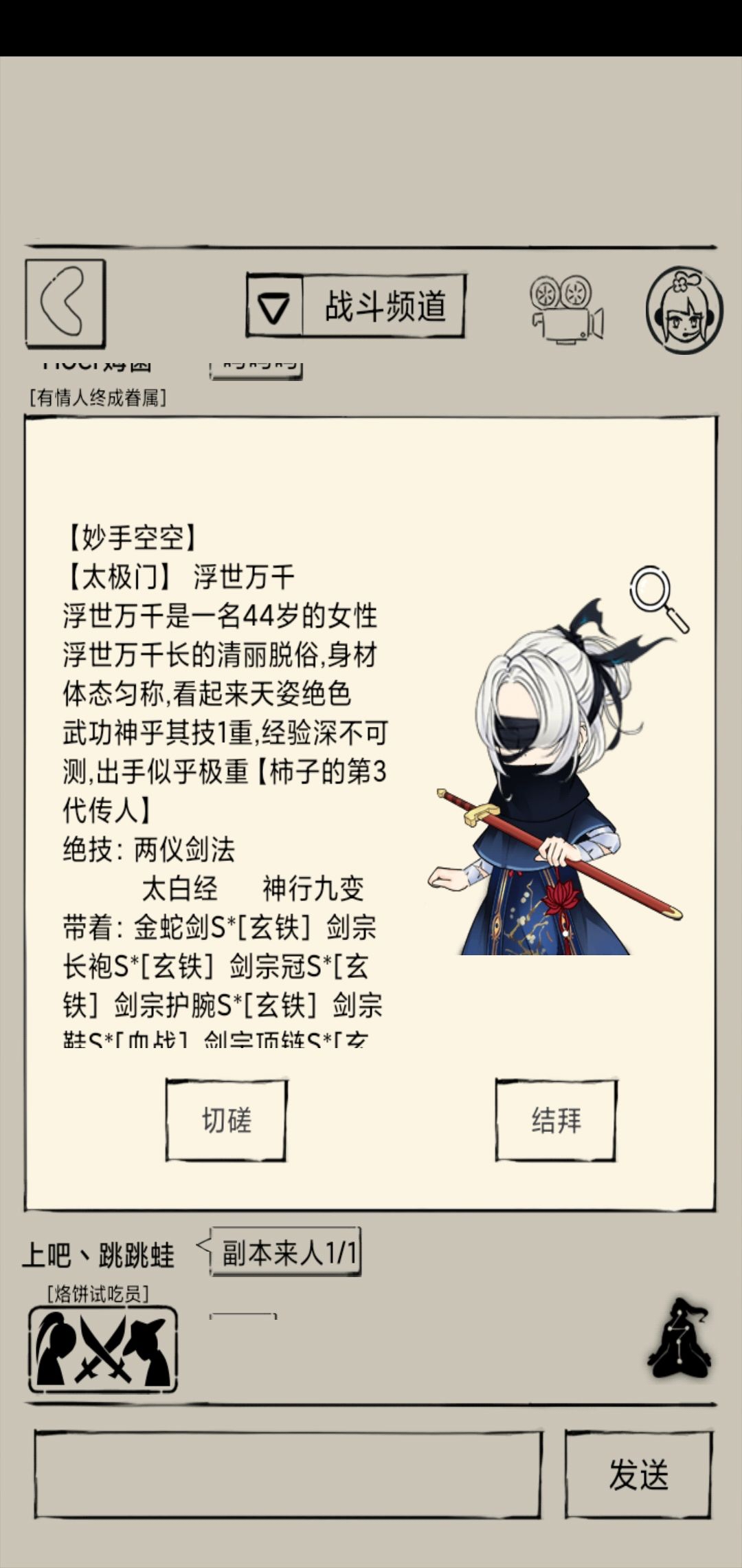 潜能不够千万别玩北冥,罗汉打秀菊(虽然打不过),蛤蟆打九剑(本来高等级蛤蟆就克制九剑
