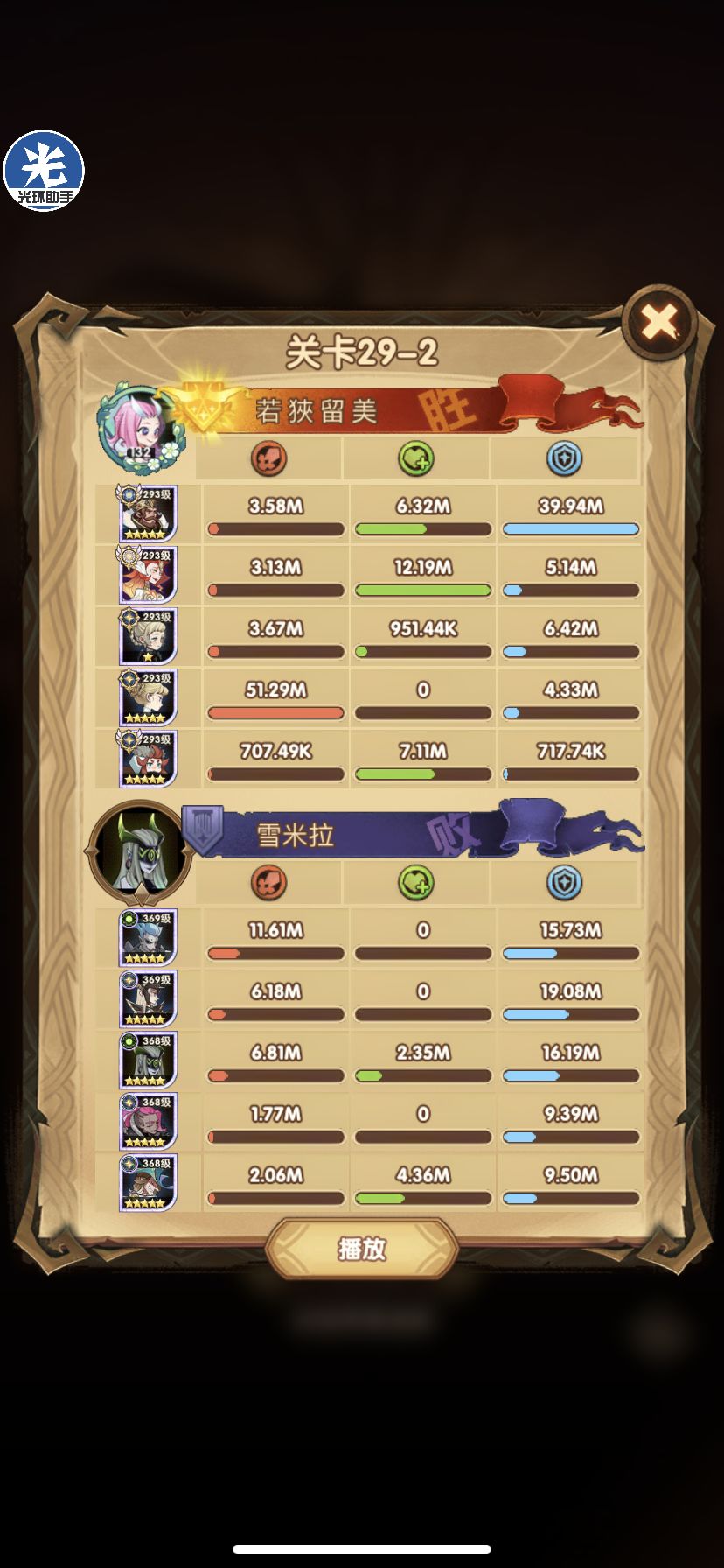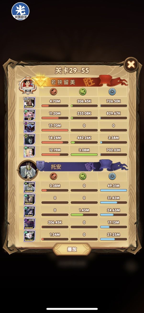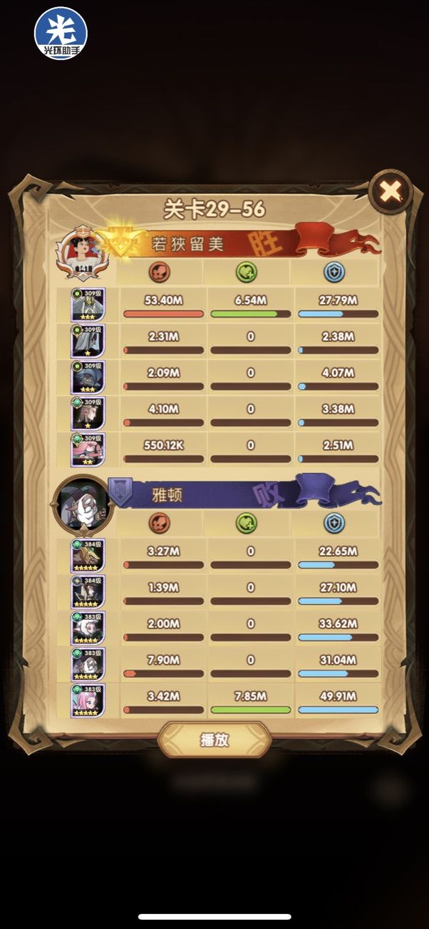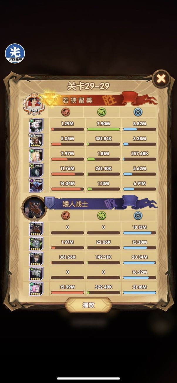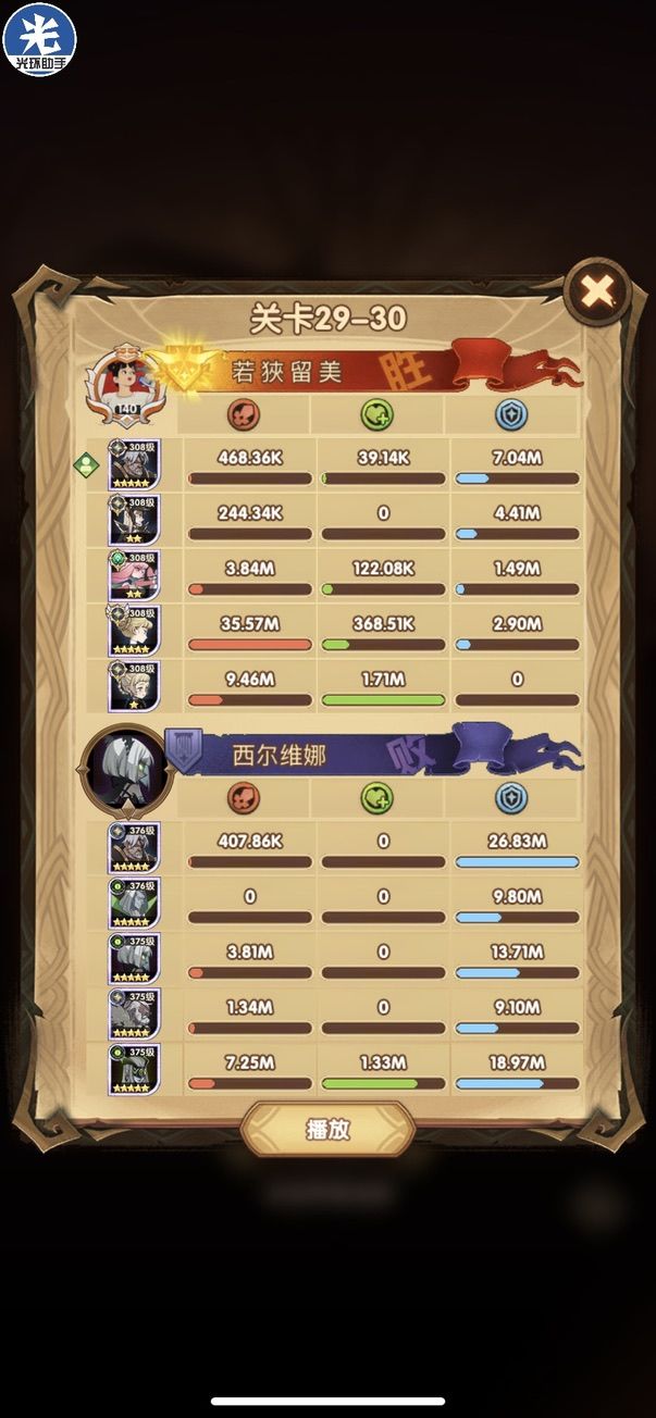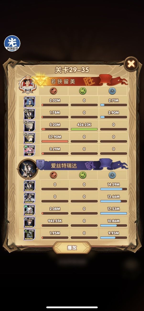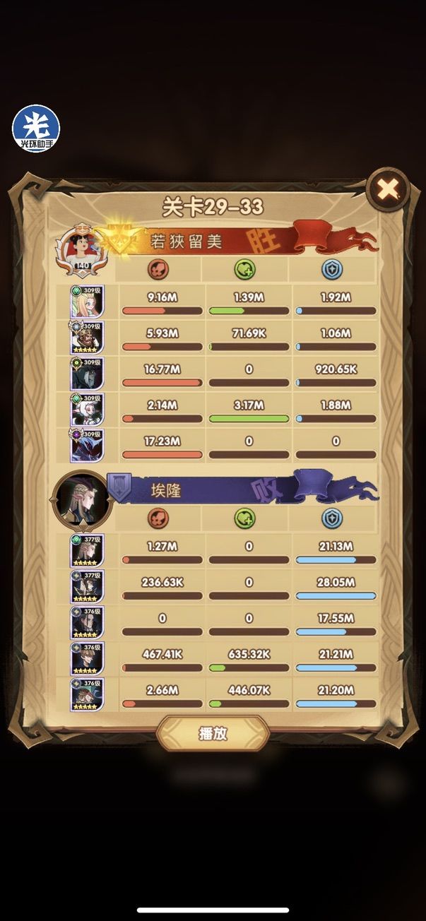29-36 这关,龙弓3个平A,9秒钟结束战斗,没开大招。
