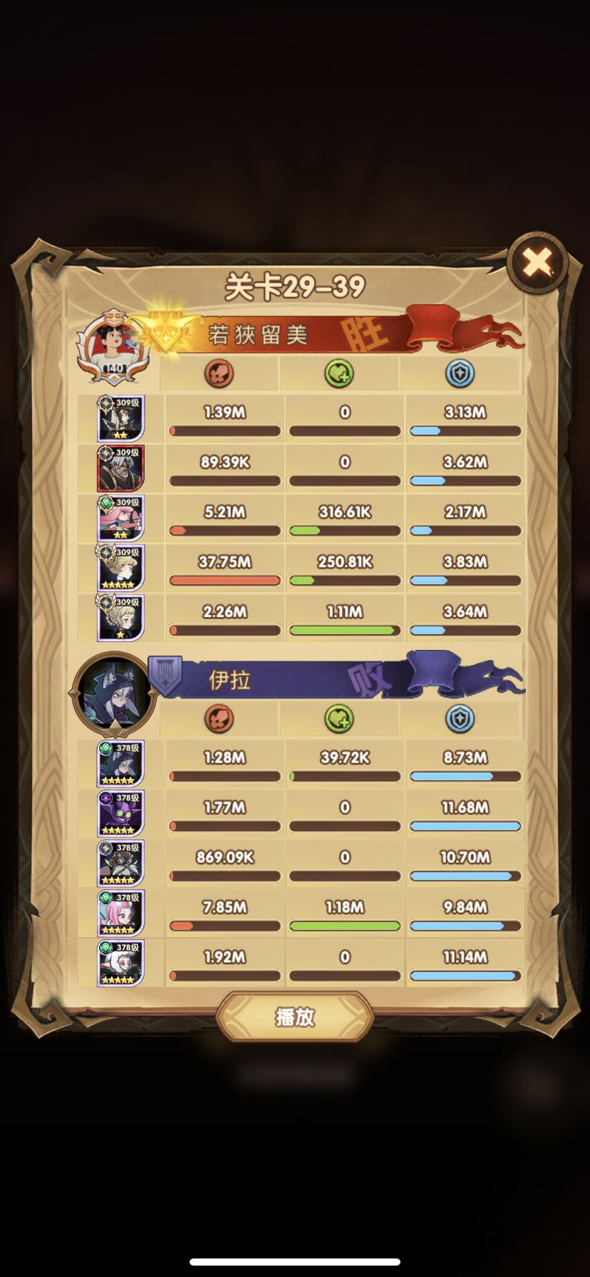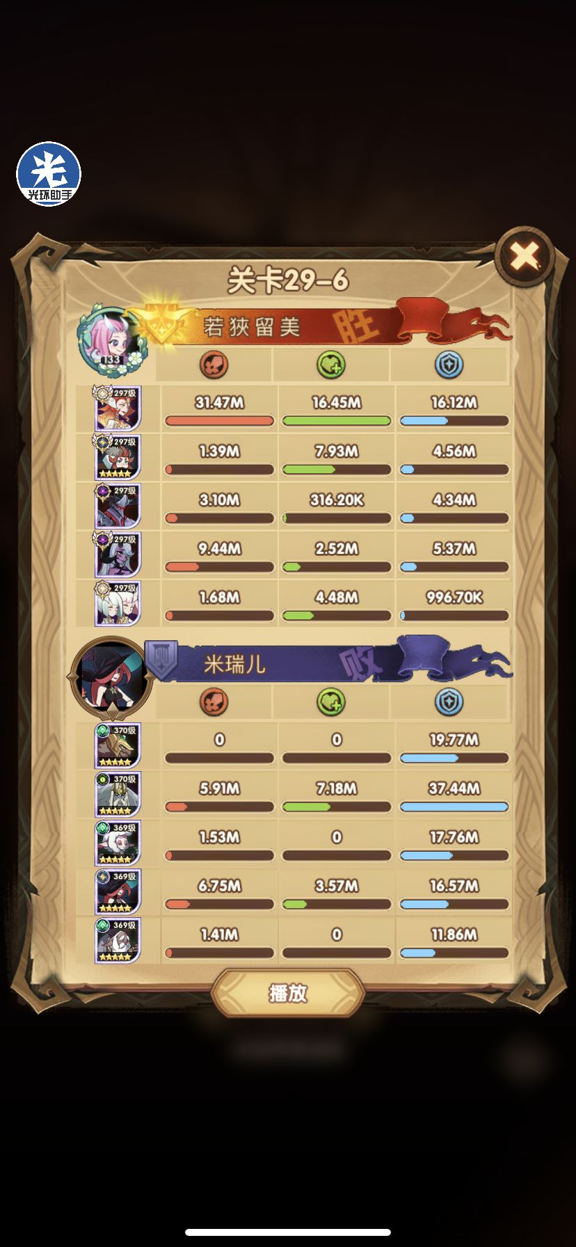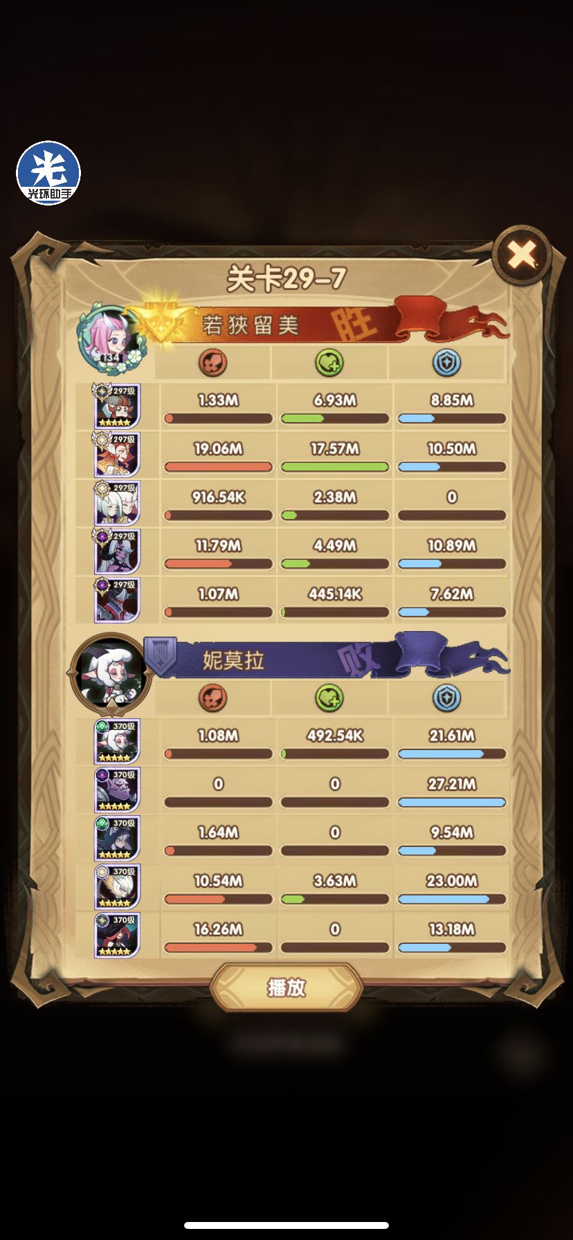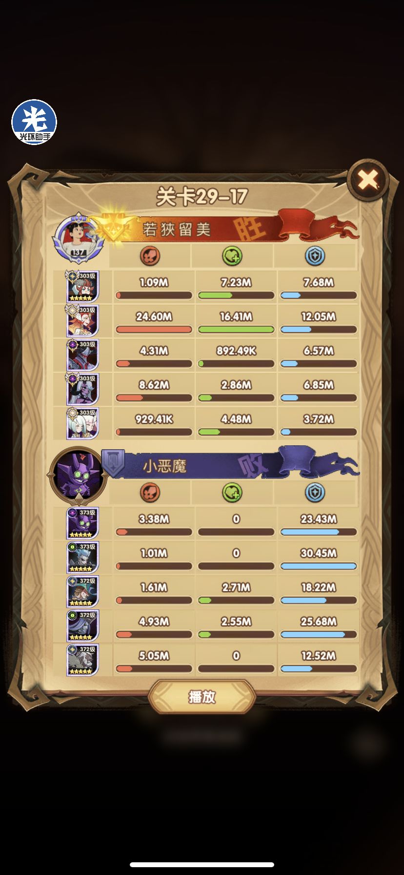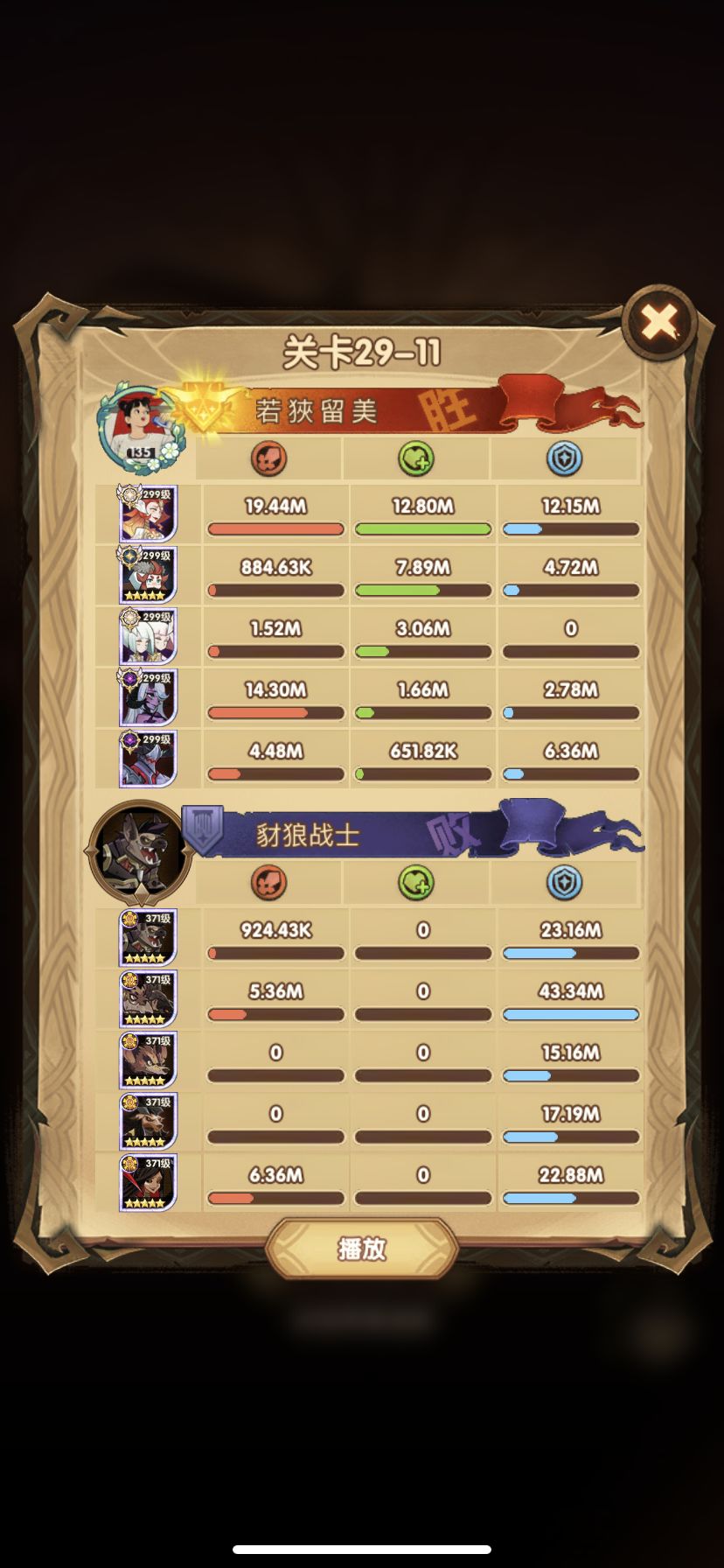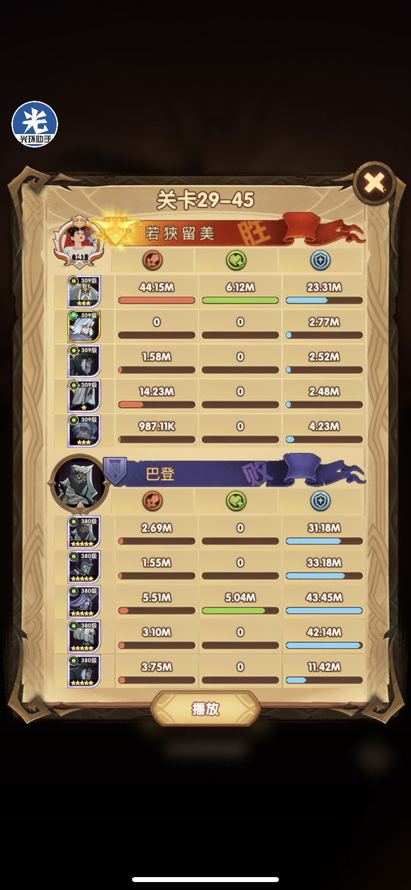 29-36 这关,龙弓3个平A,9秒钟结束战斗,没开大招。