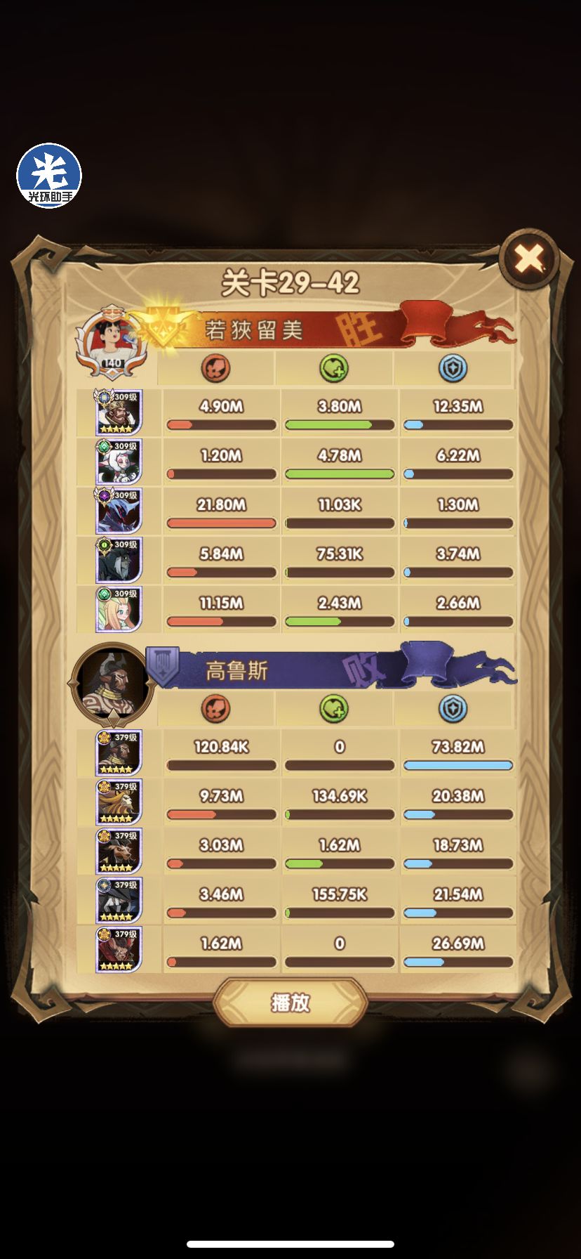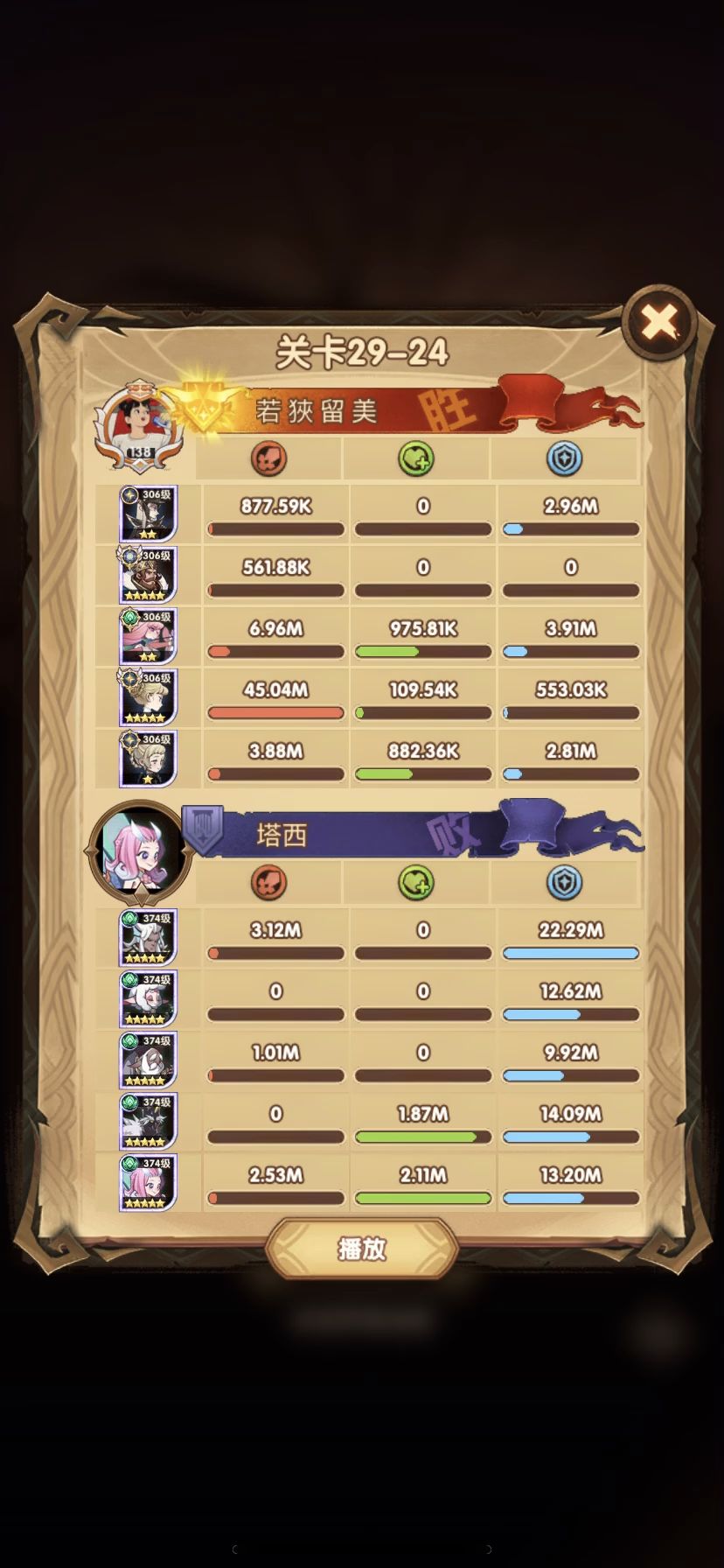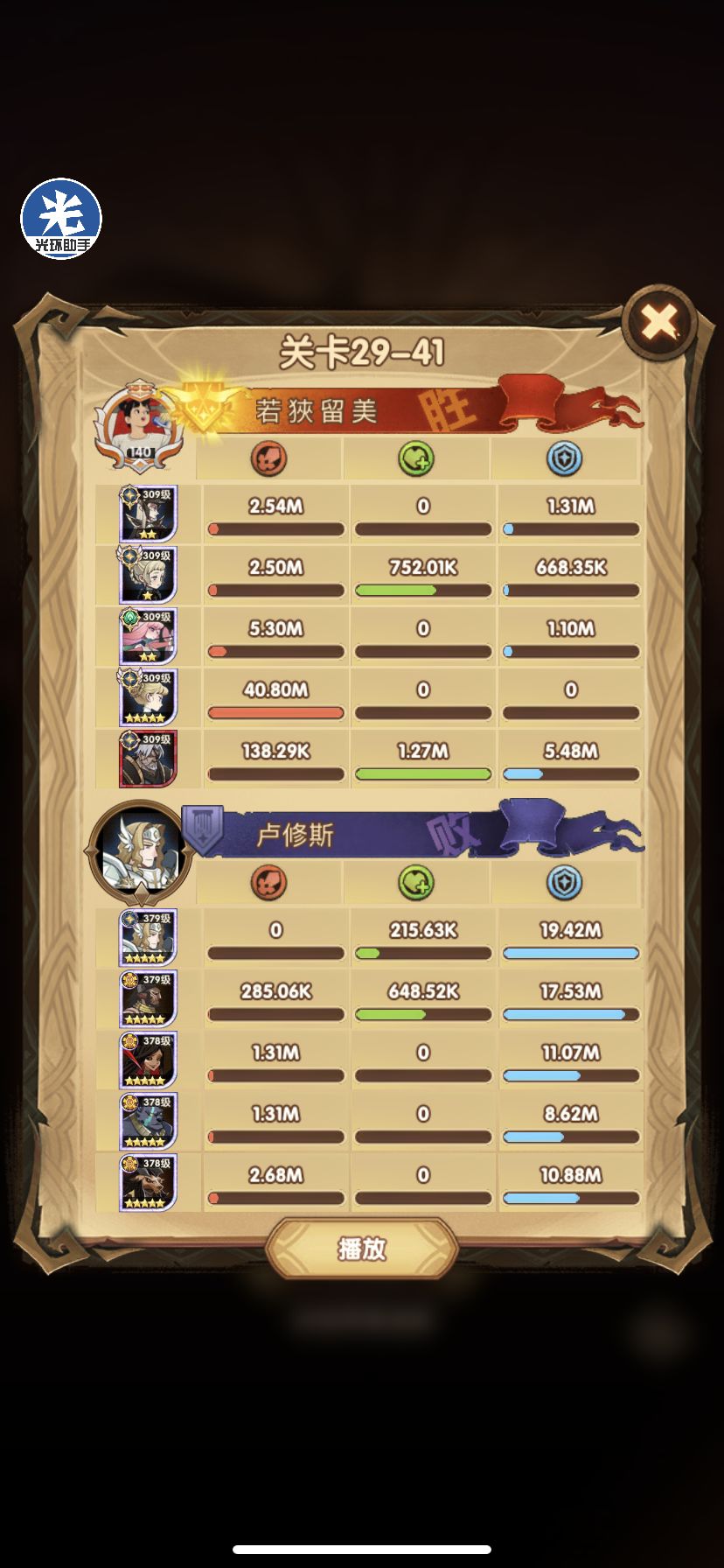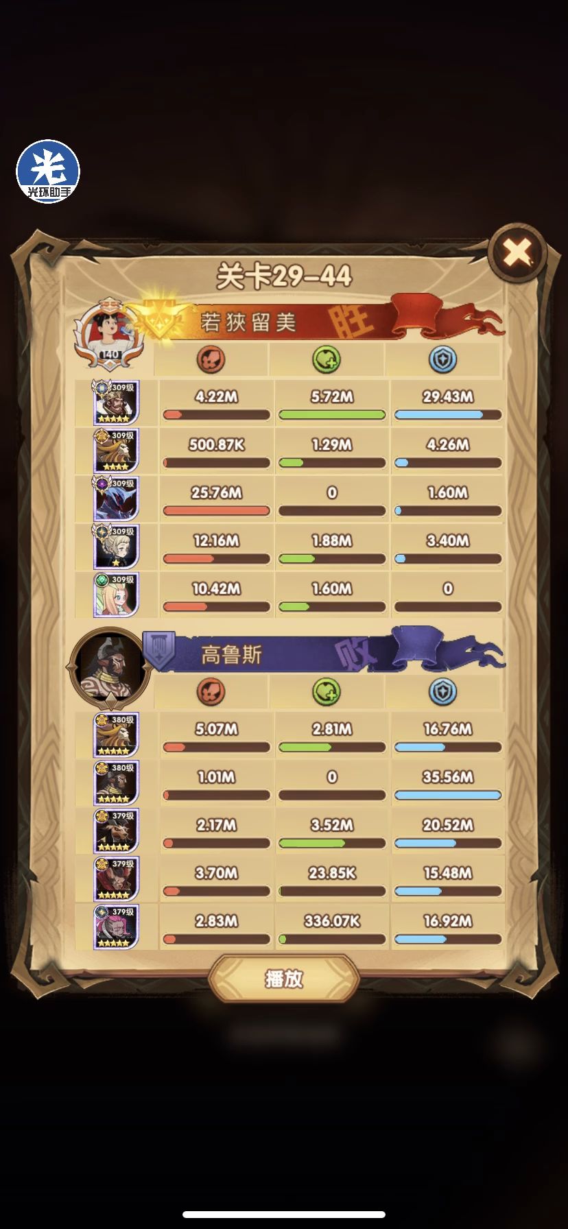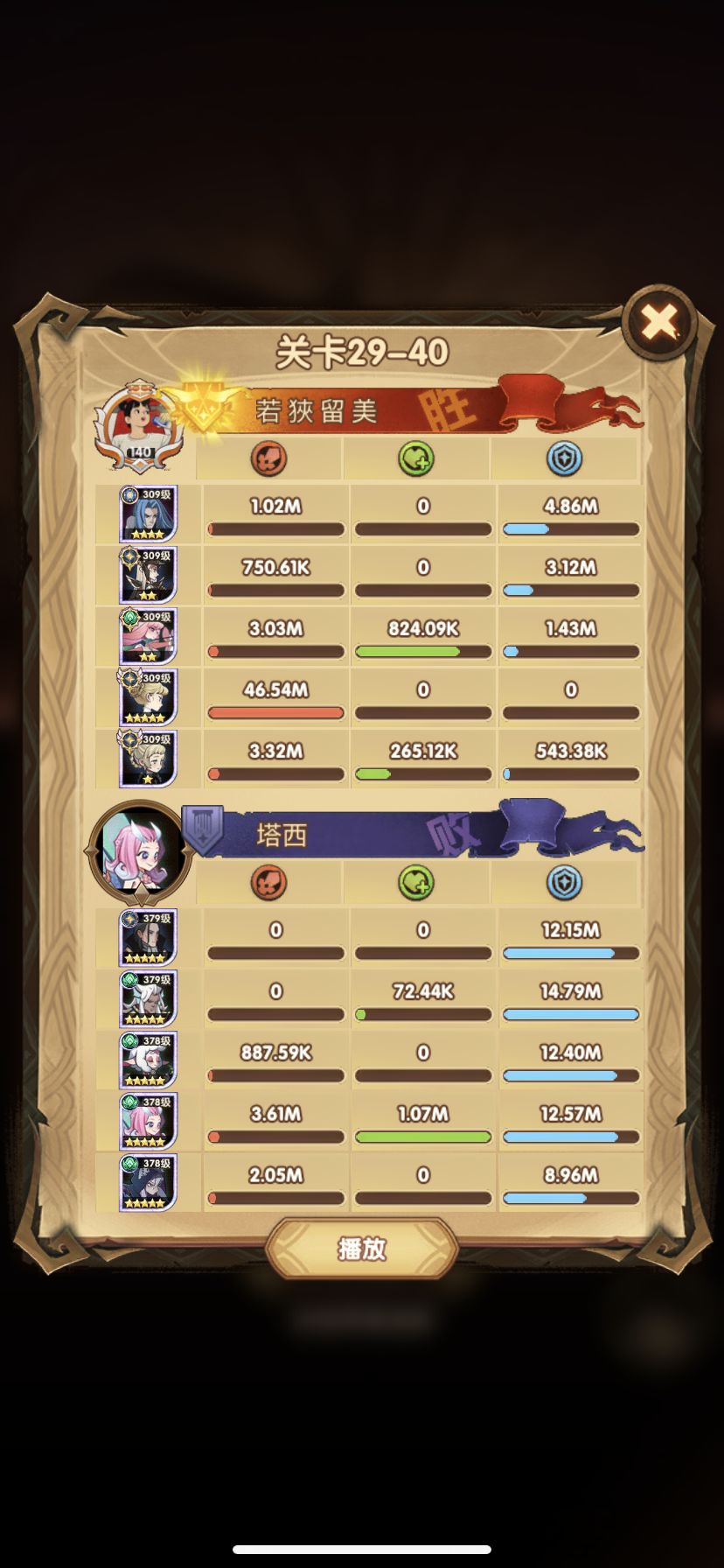 29-36 这关,龙弓3个平A,9秒钟结束战斗,没开大招。