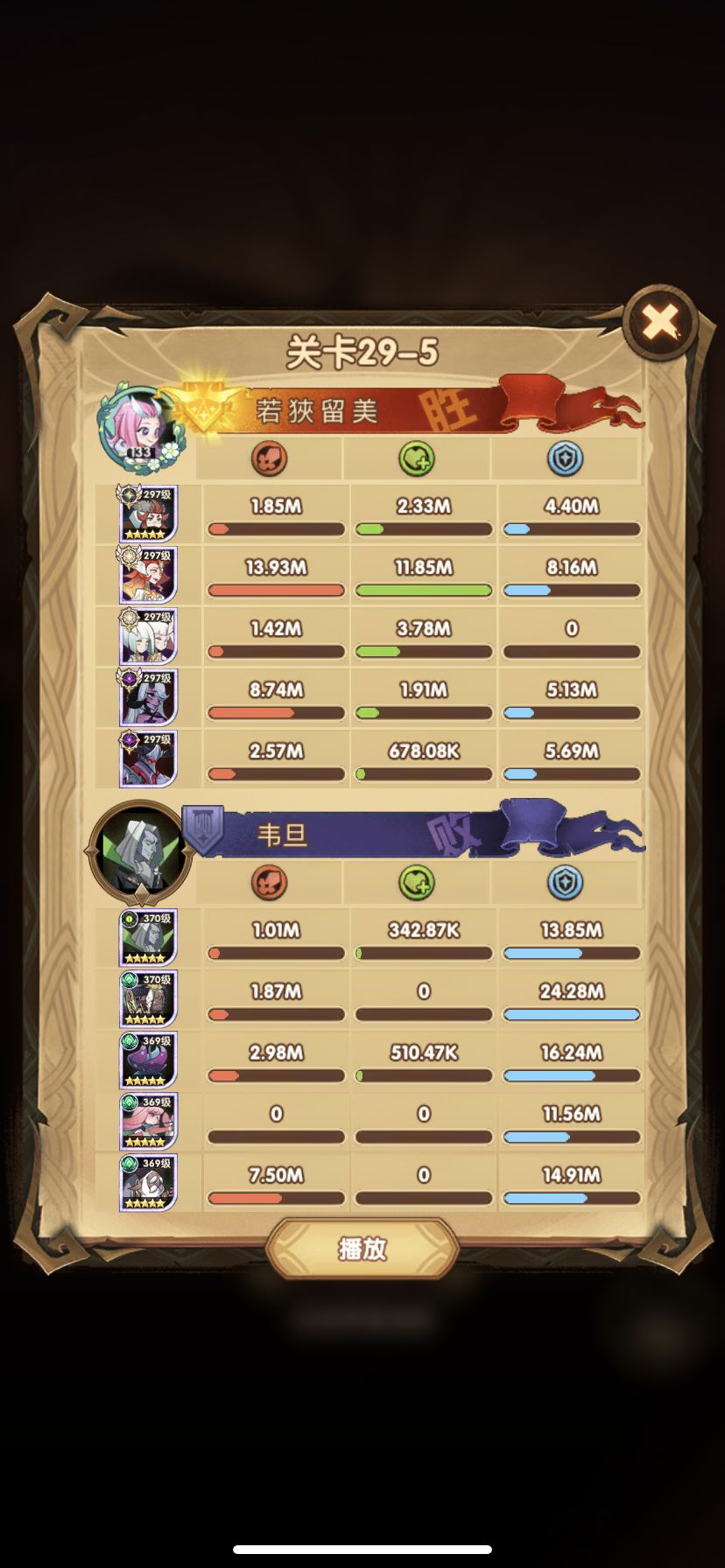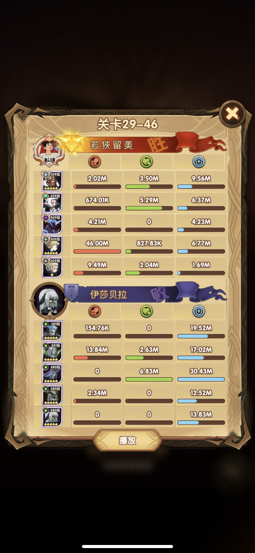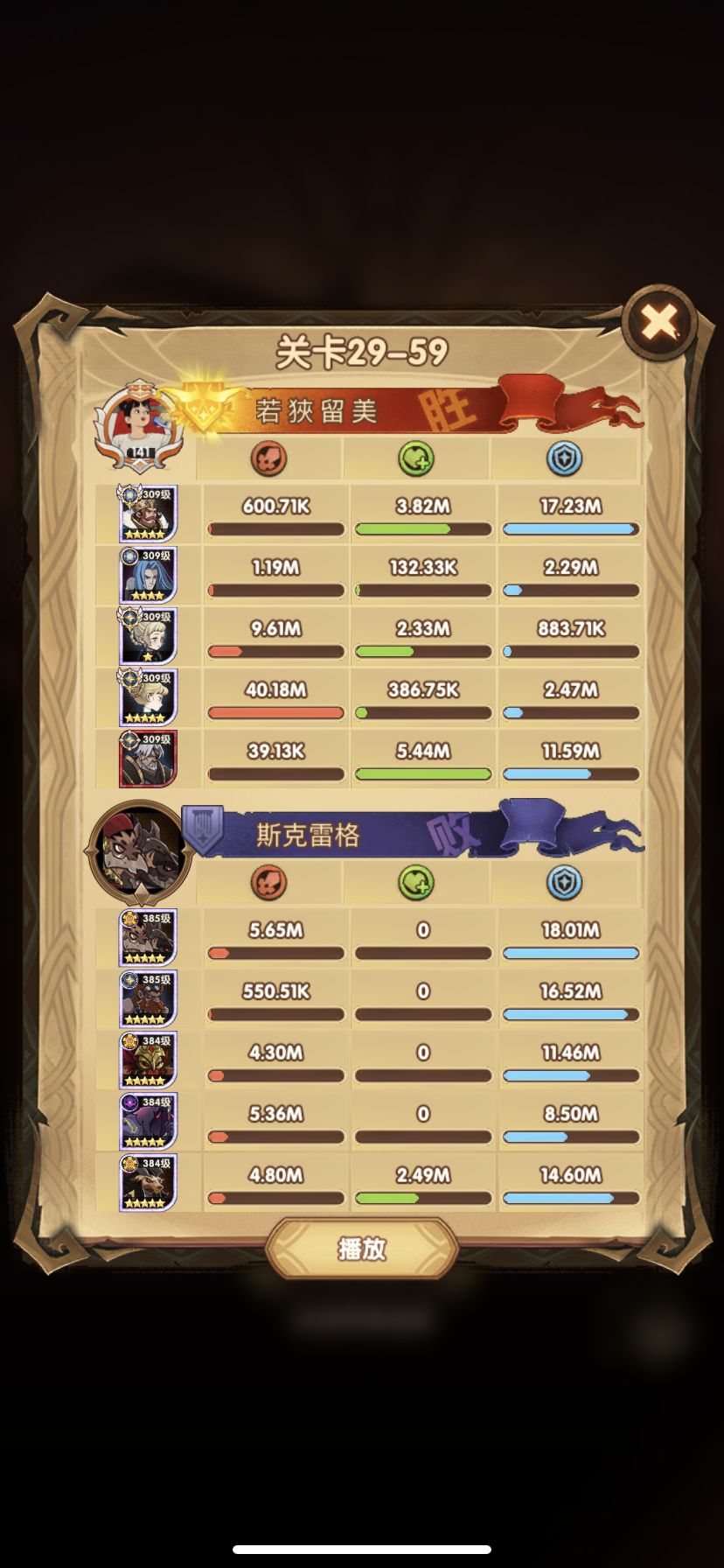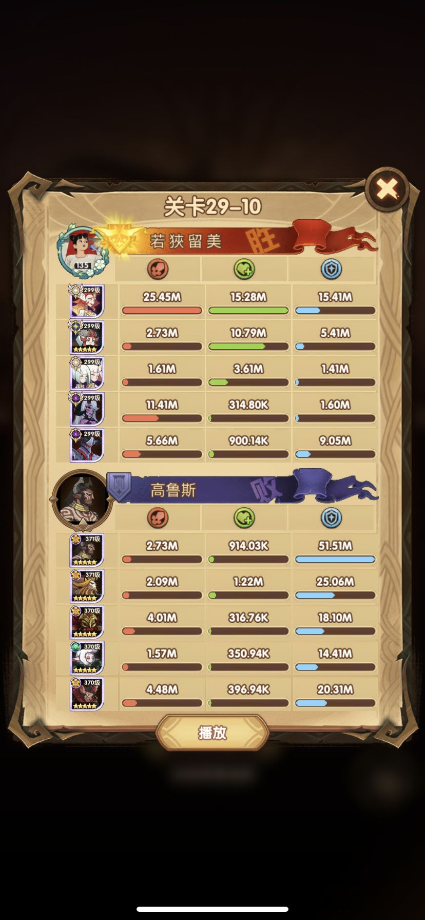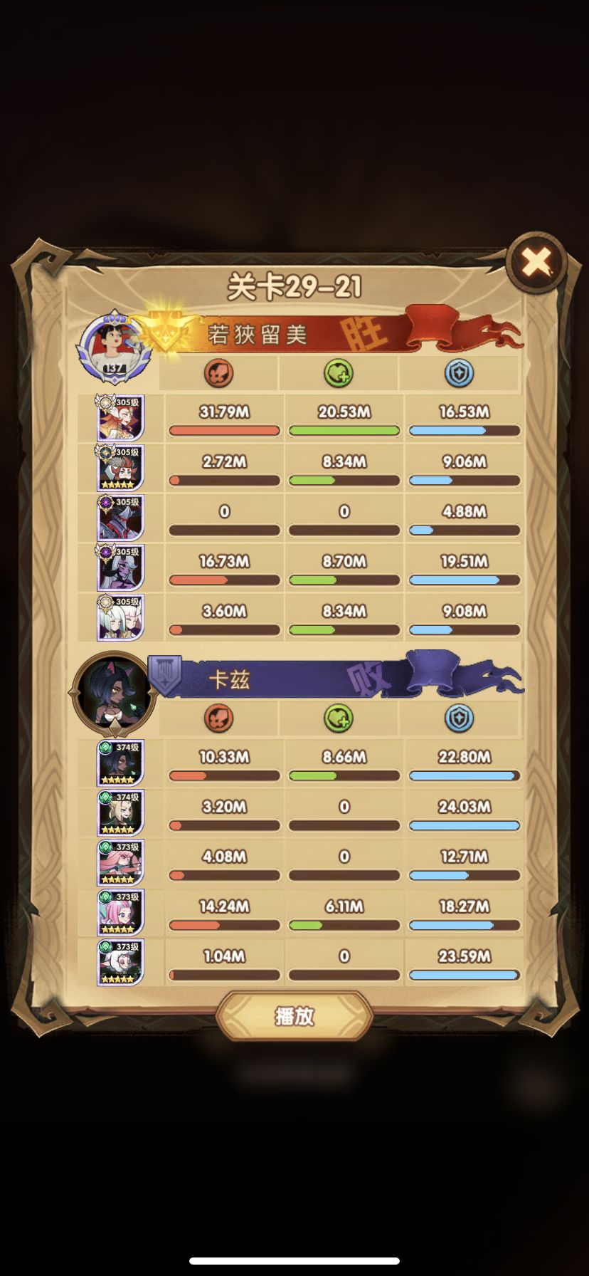 29-36 这关,龙弓3个平A,9秒钟结束战斗,没开大招。