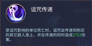 诅咒传递:受诅咒影响的单位死亡时,诅咒会传递到附近的其它敌人身上,并在传递的同时造成2753伤害。