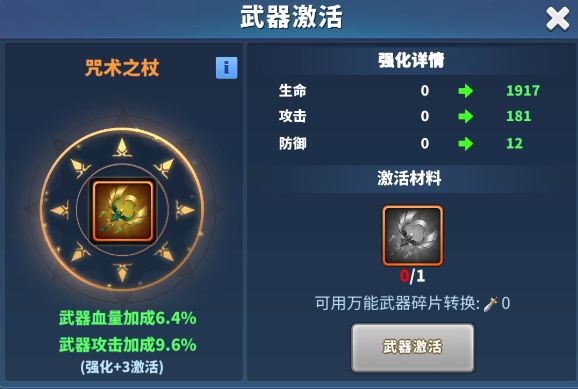 咒术之杖强化到3以后可以激活血量和攻击buff。