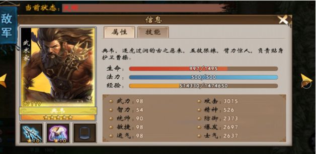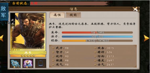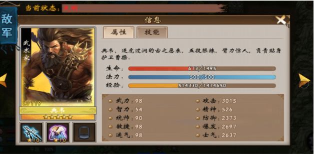 吕布的第一攻击目标,是下方的敌军,然后利用追击去打左下角的典韦。正常的攻击,应该是造成典韦33%的伤害,如下图: