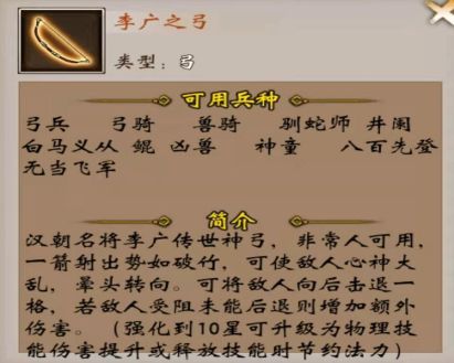 李广弓:特性击退敌人一格,格挡增伤66%,三属性物理技能伤害提升25%或释放技能时节约法力33%