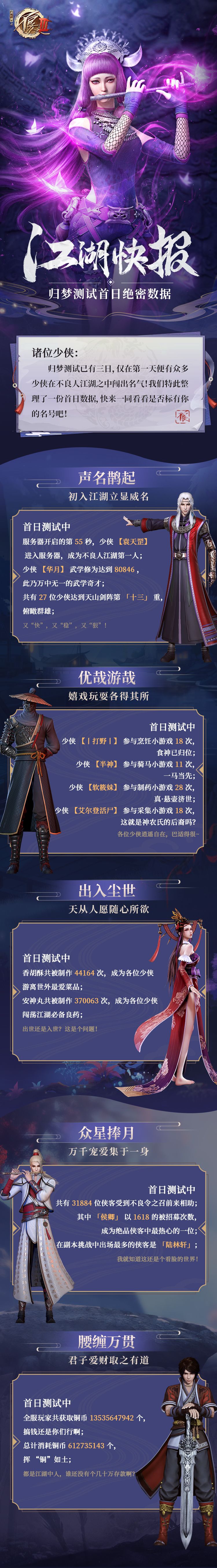 江湖快报:归梦测试首日绝密数据
