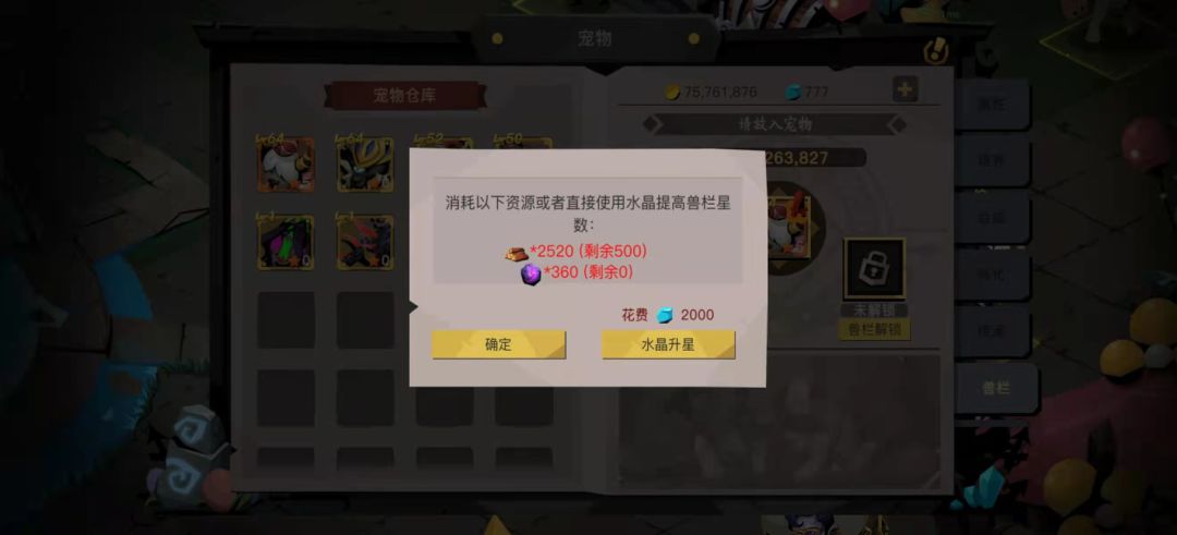 兽栏的升星就是用深渊新图出的材料或者直接水晶进行提升!