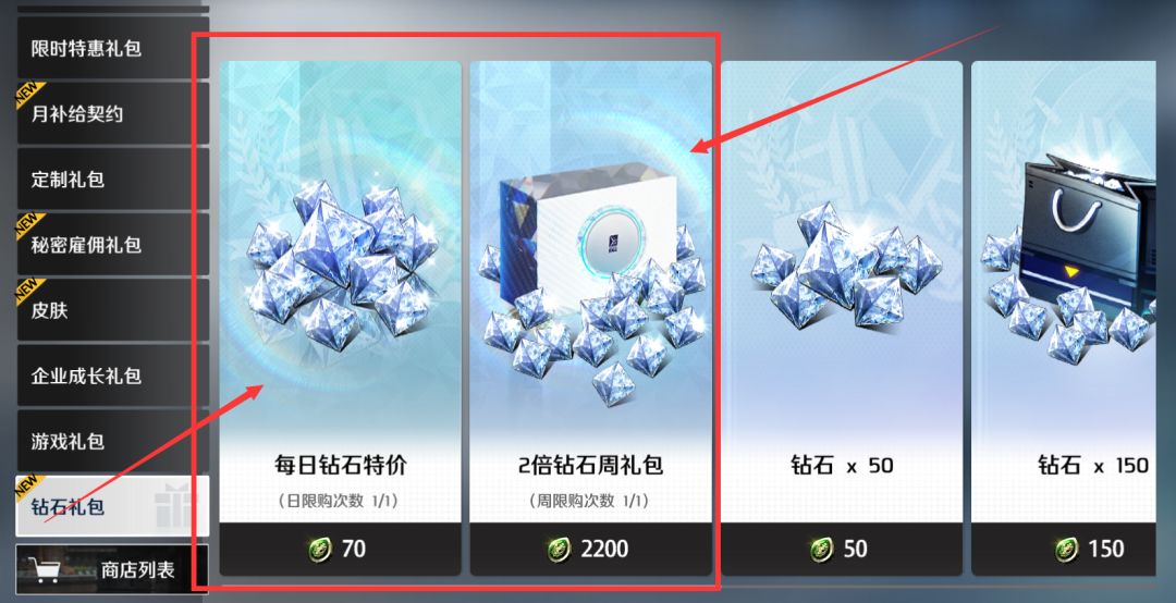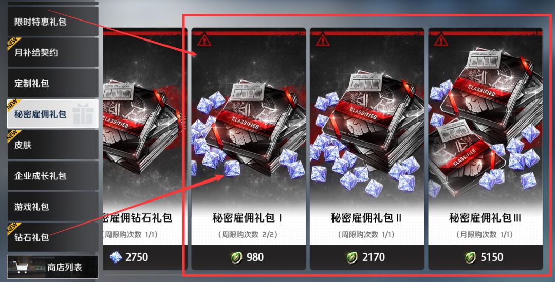 每周的秘密雇佣钻石礼包收益最高必买,其次为补给所黑票,刷新到就买。