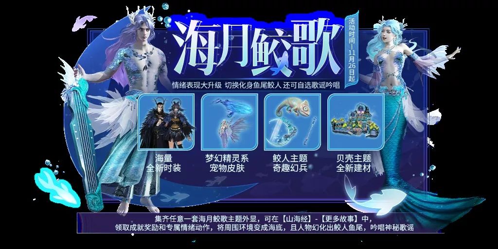 各位旅者大家好!三天前本咪给大家带来的新一期挖宝活动——“海月鲛歌”的爆料!今天就是11月26日了,本次挖宝活动也就正式开启啦~同时,新的山海超模集结也将再次强势来袭!是不是勾起了旅者们的好奇心呢?快来跟本咪一起来看看吧!