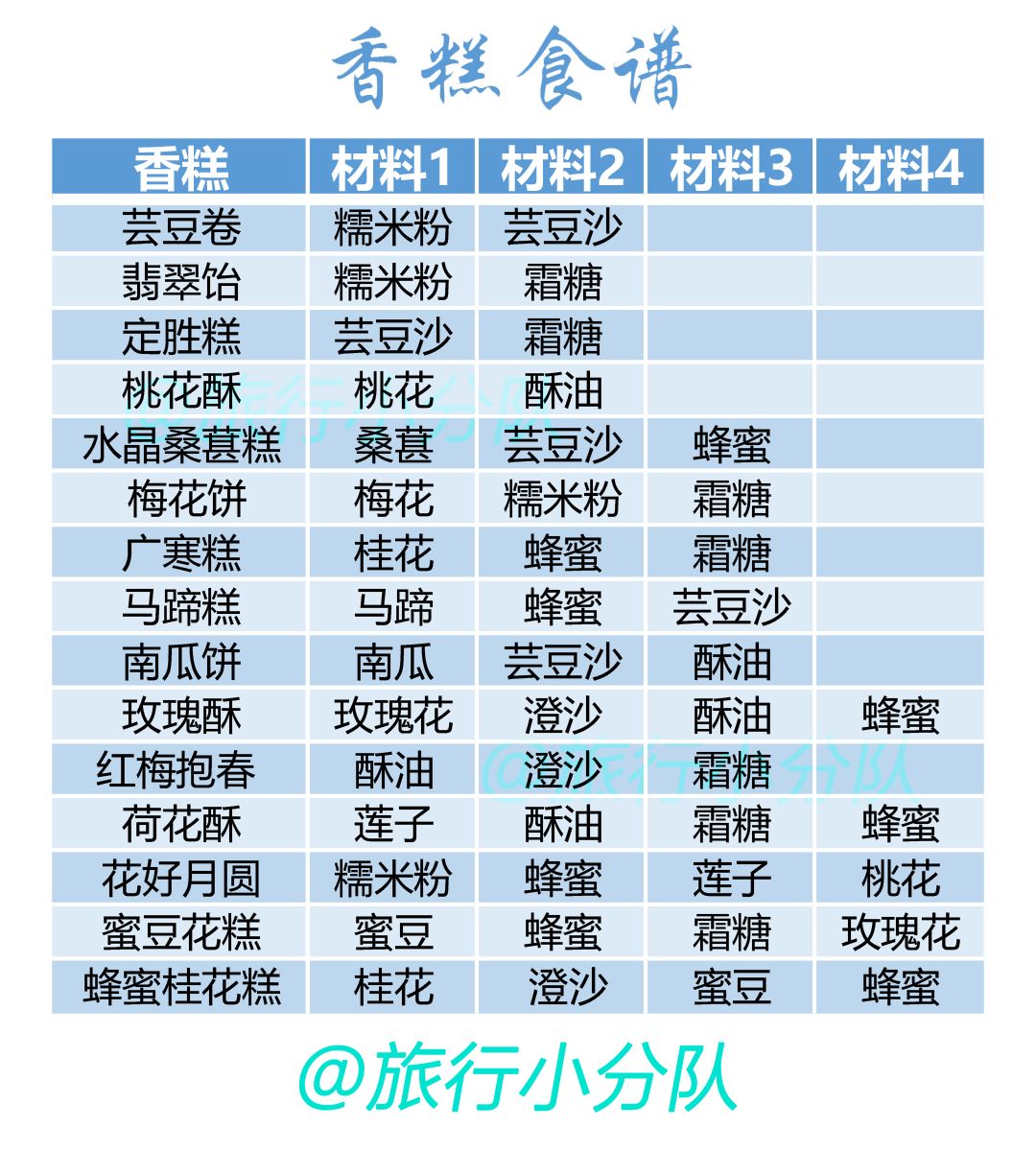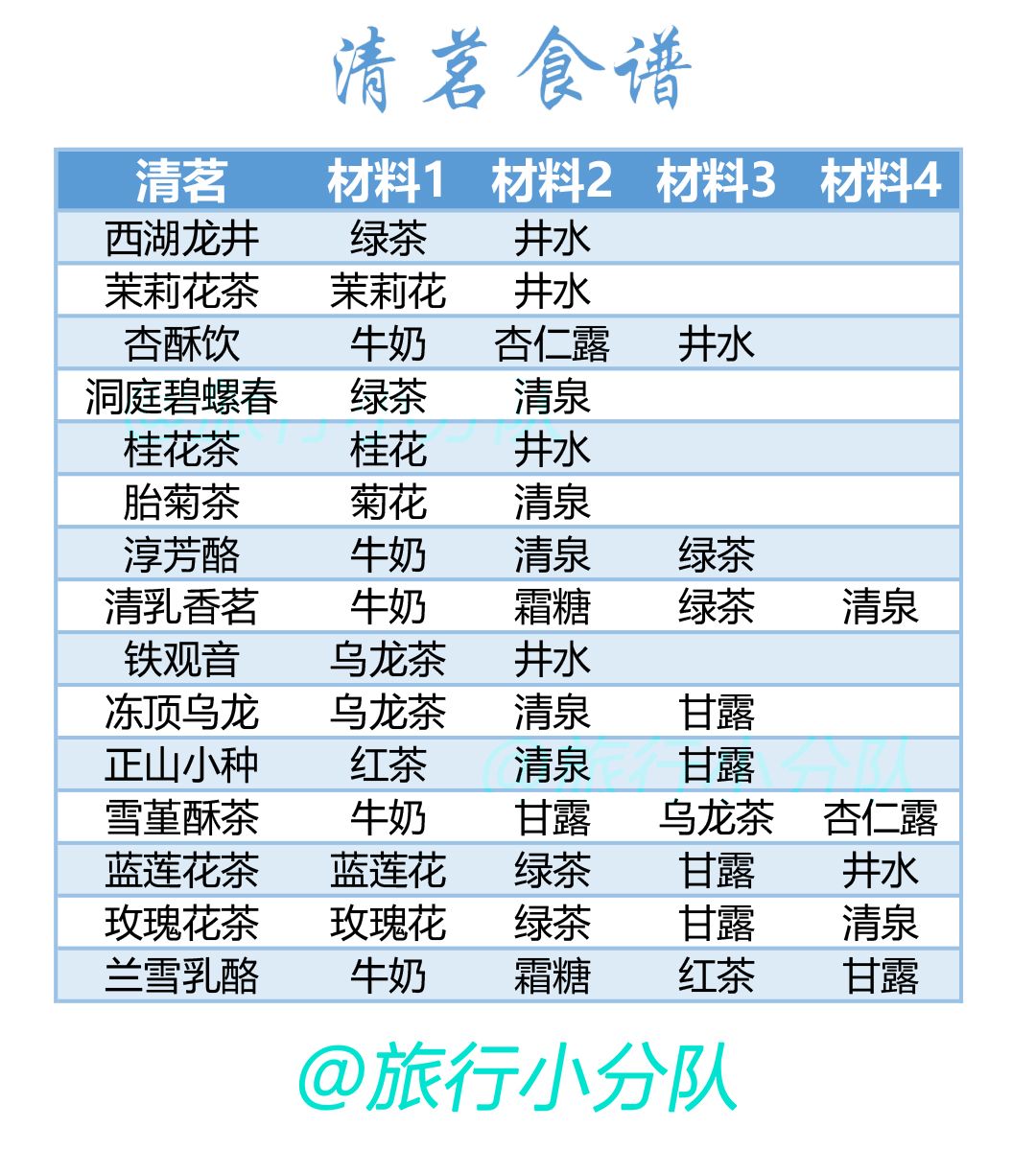 ↓↓↓茶会具体食谱见下附表格