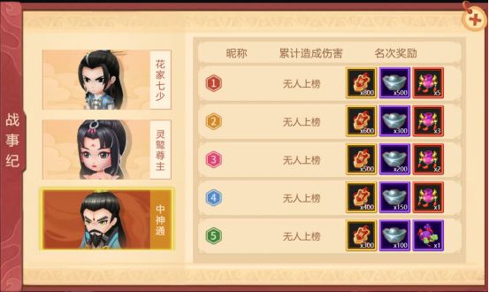 挑战中将设置战事纪,收录累计伤害最高的前五名玩家。